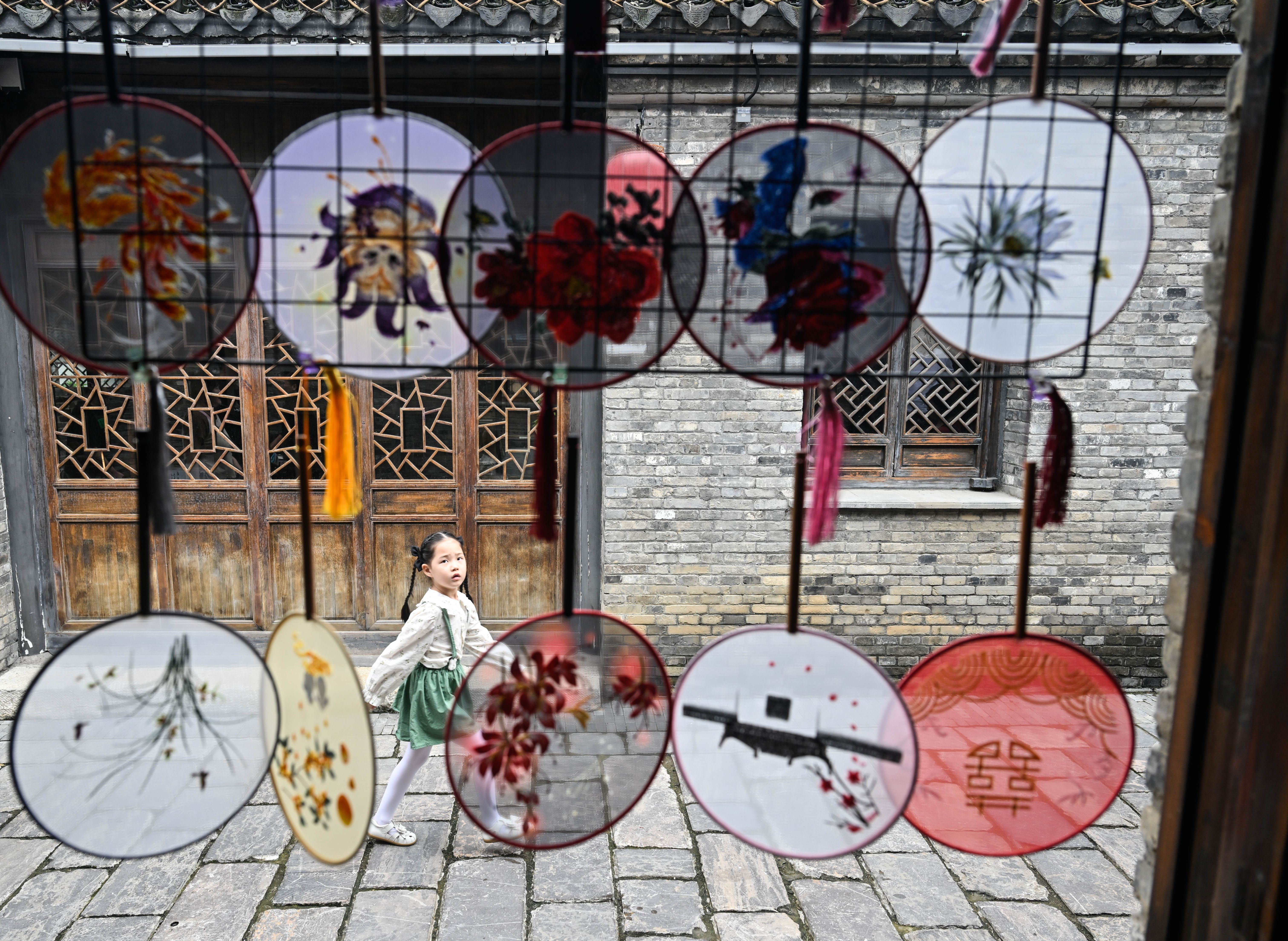 A girl walks on a historical and cultural block of Xuyi County, east China's Jiangsu Province, on October 1, 2025. Xuyi County of Jiangsu Province has introduced a series of measures to boost tourism during the National Day holiday, such as free admission to a local scenic spot, and distribution of consumption vouchers, in an effort to unleash the vitality of tourism-driven economy during the holiday. (Photo by Xinhua News Agency/Rex Features/Shutterstock)