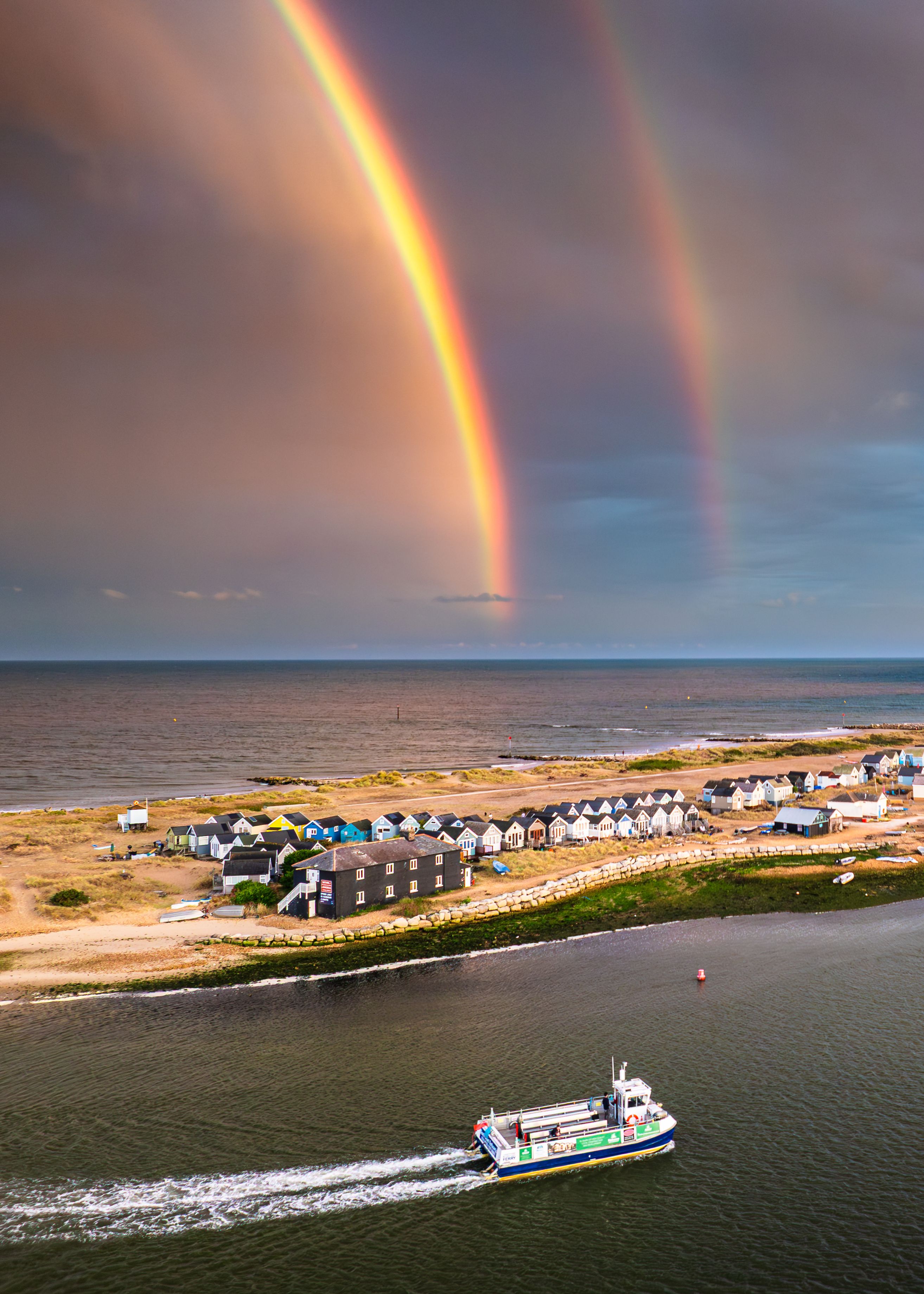 A spectacular double rainbow over the beach huts on Mudeford Sandbank, Dorset, UK, captured by photographer Will Evans on August 28, 2025. (Photo by Will Evans/SnapPhotography via Bournemouth News)
