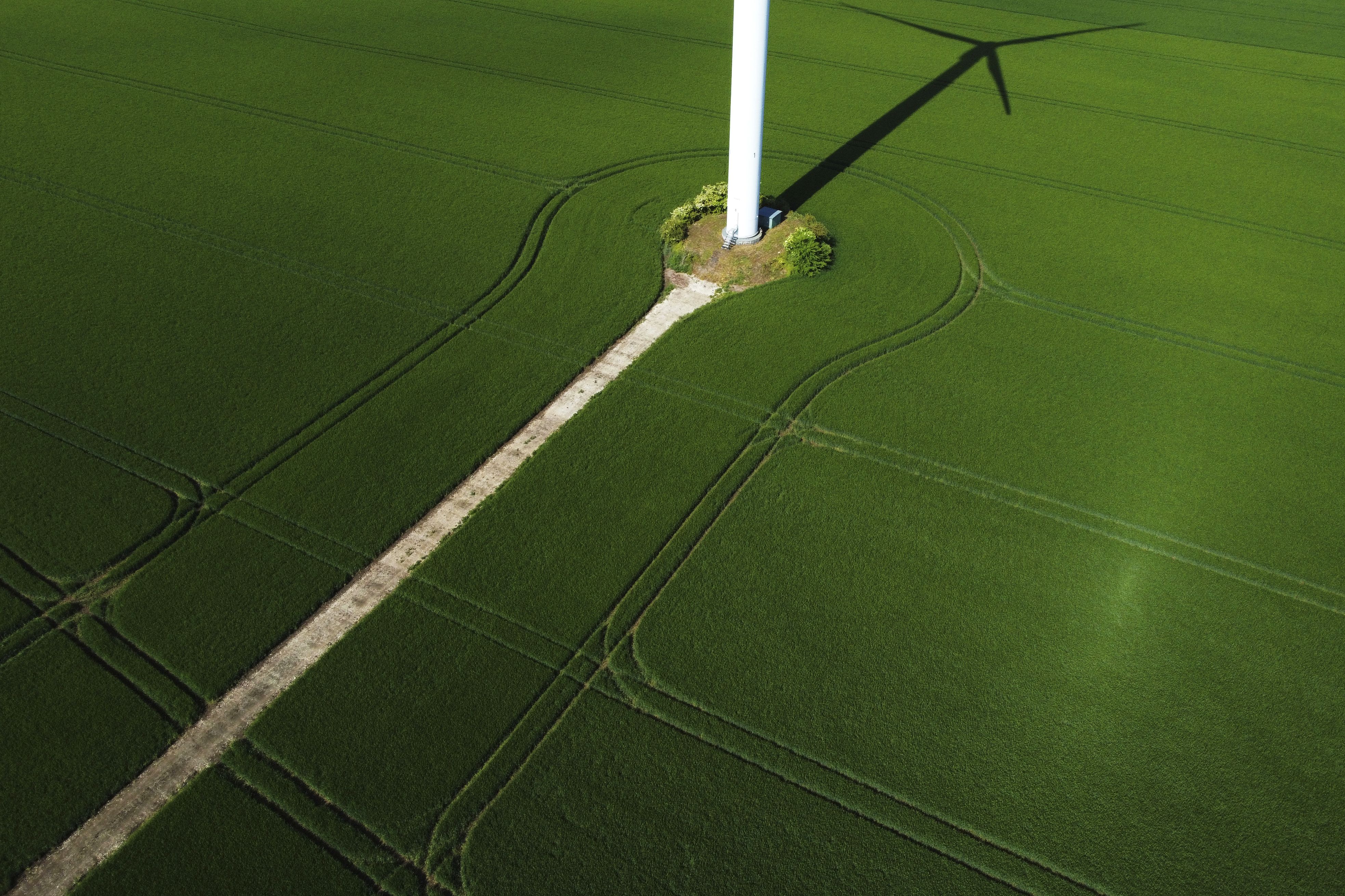 The shadow of a wind turbine falls on a field at a wind farm near Aschersleben, Germany, Monday, May 26, 2025. (Photo by Matthias Schrader/AP Photo)