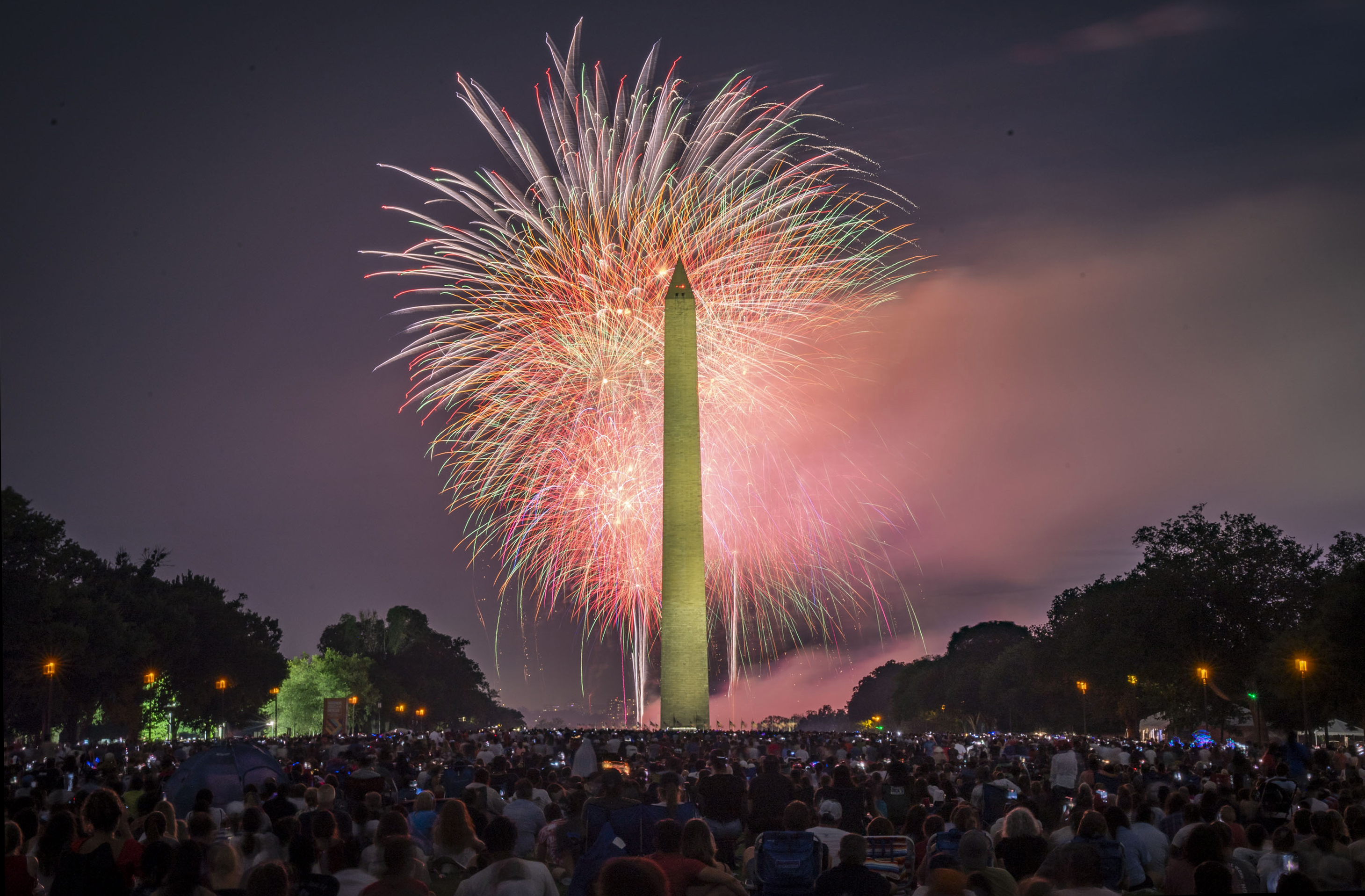 Fireworks on the National Mall in Washington, DC, on July 4, 2024. (Photo by Allison Robbert/The Washington Post)