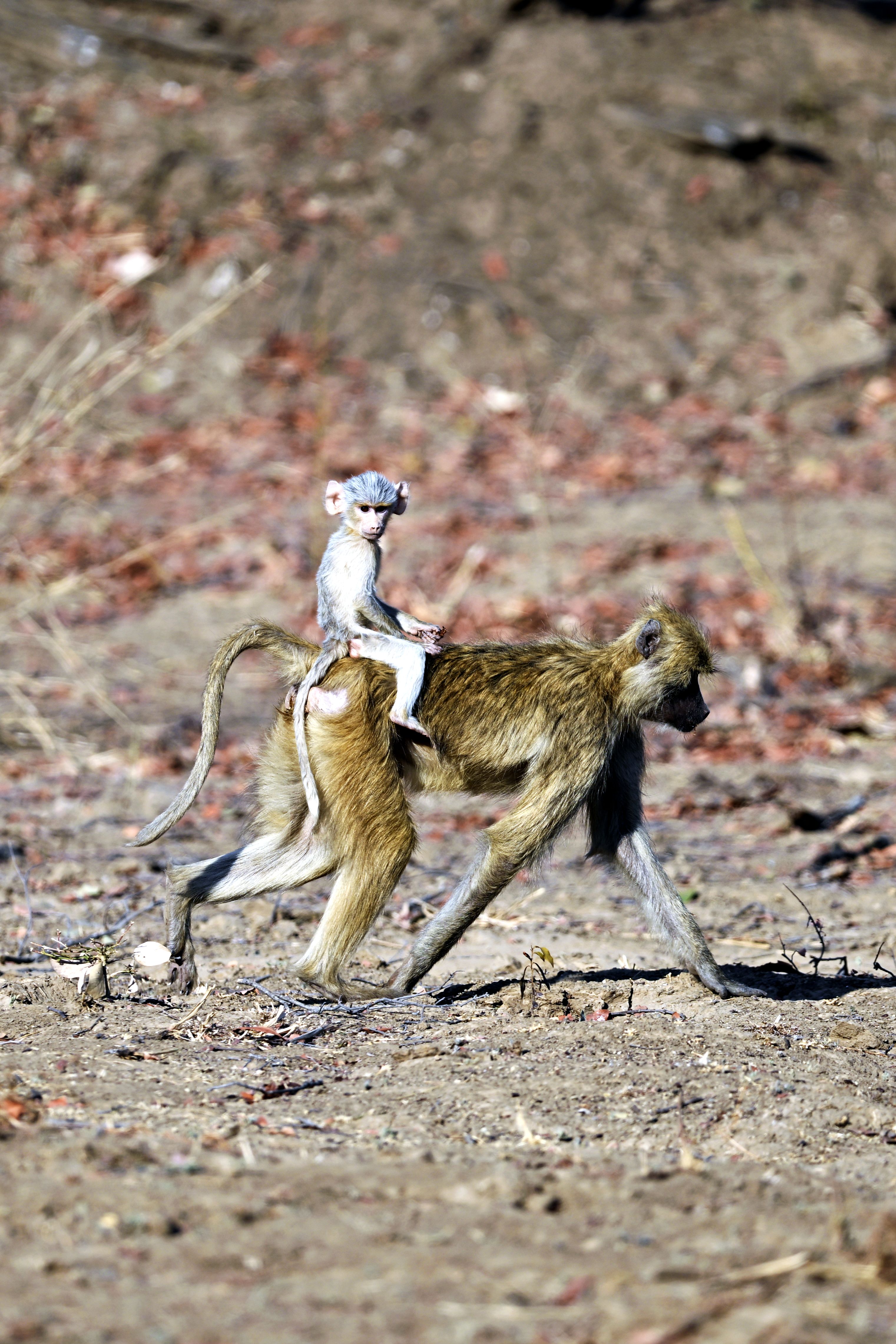 An extremely rare leucistic yellow baboon hitches a ride on its mother’s back back in South Luangwa National Park in Zambia in the last decade of October 2025. Leucistic baboons are almost unheard of, with only a handful of sightings confirmed in the wild. Their pale coats make them stand out to predators and vulnerable to social rejection. (Photo by Alexander Ley/Burkhard Ley/TwoPointO Media)