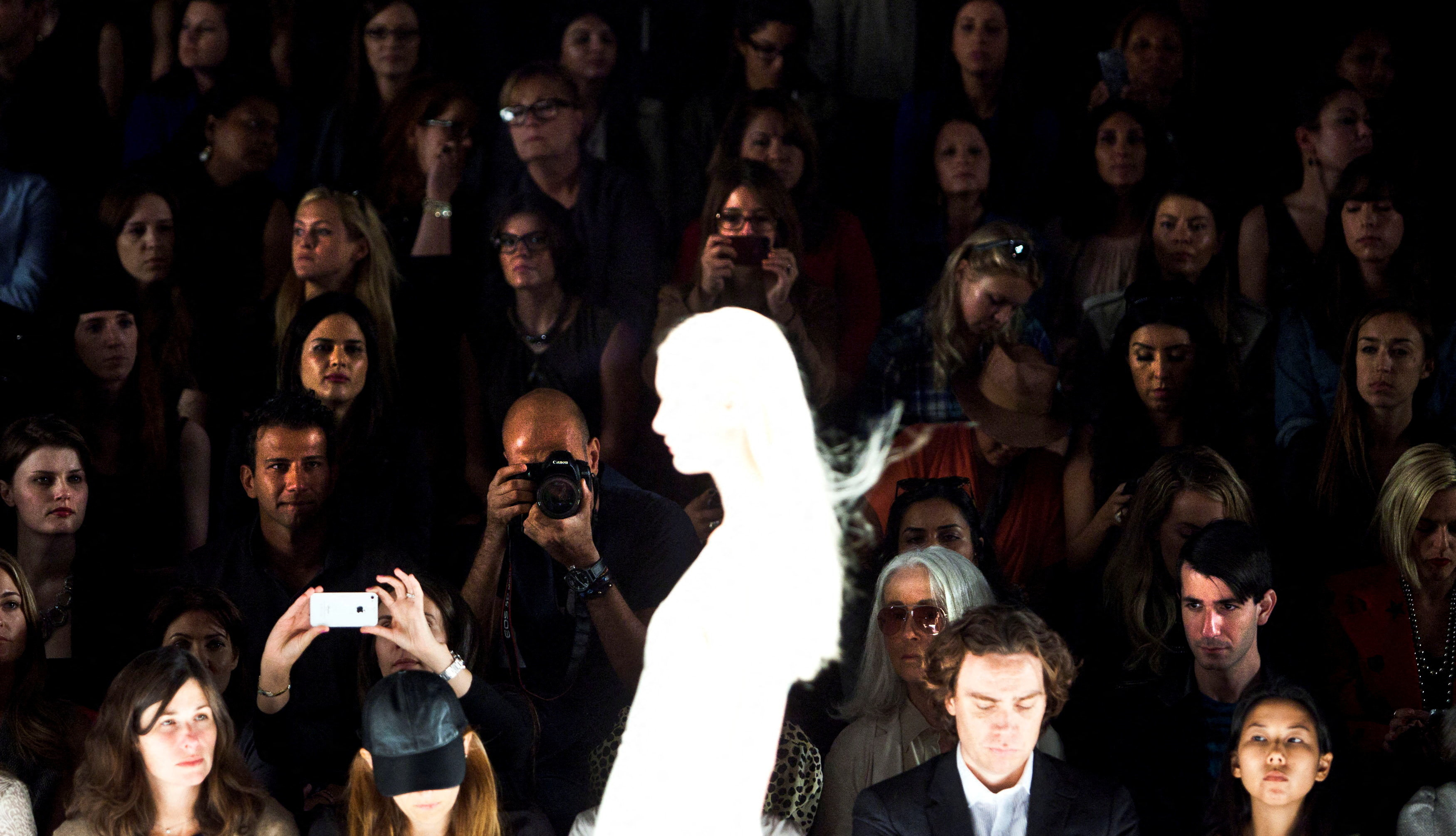 Audience members watch a model during the J. Mendel Spring/Summer 2013 show at New York Fashion Week, on September 12, 2012. (Photo by Andrew Burton/Reuters)
