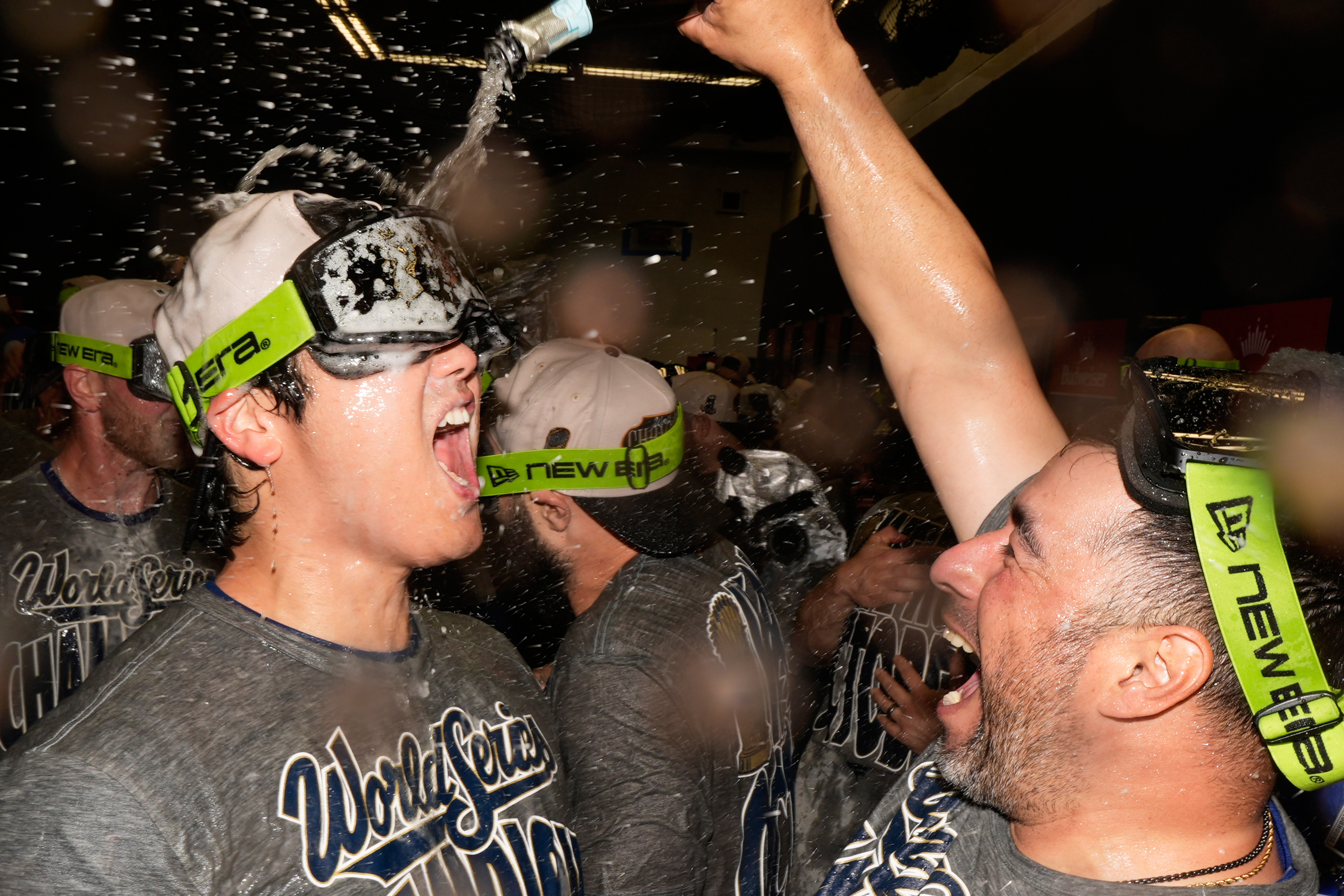 Los Angeles Dodgers pitcher Shohei Ohtani celebrate after their win against the Toronto Blue Jays in Game 7 of baseball's World Series, Sunday, November 2, 2025, in Toronto. (Photo by Brynn Anderson/AP Photo)