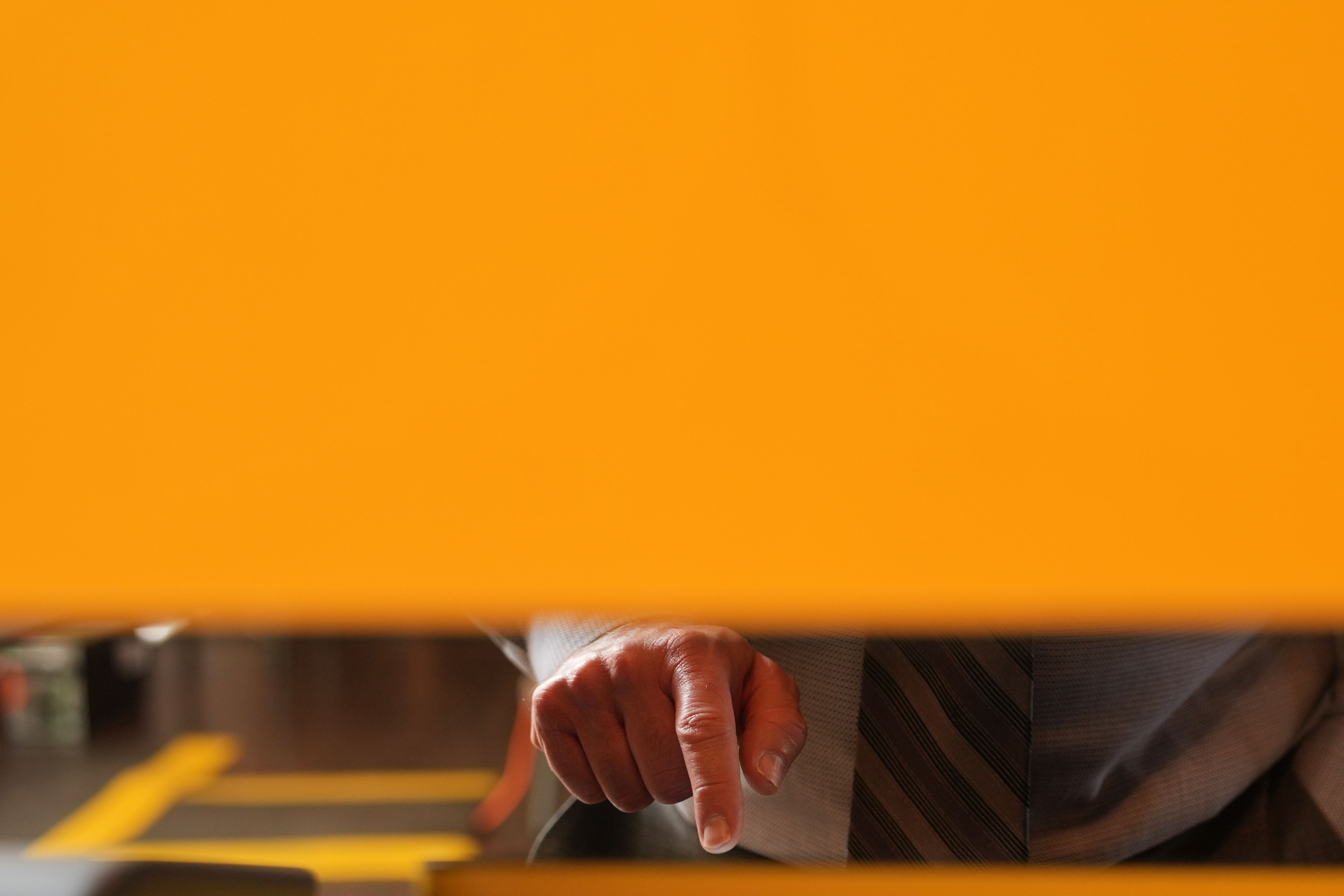 A voter casts his ballot in Beverly Hills, Calif., November 4, 2025. (Photo by Jae C. Hong/AP Photo)