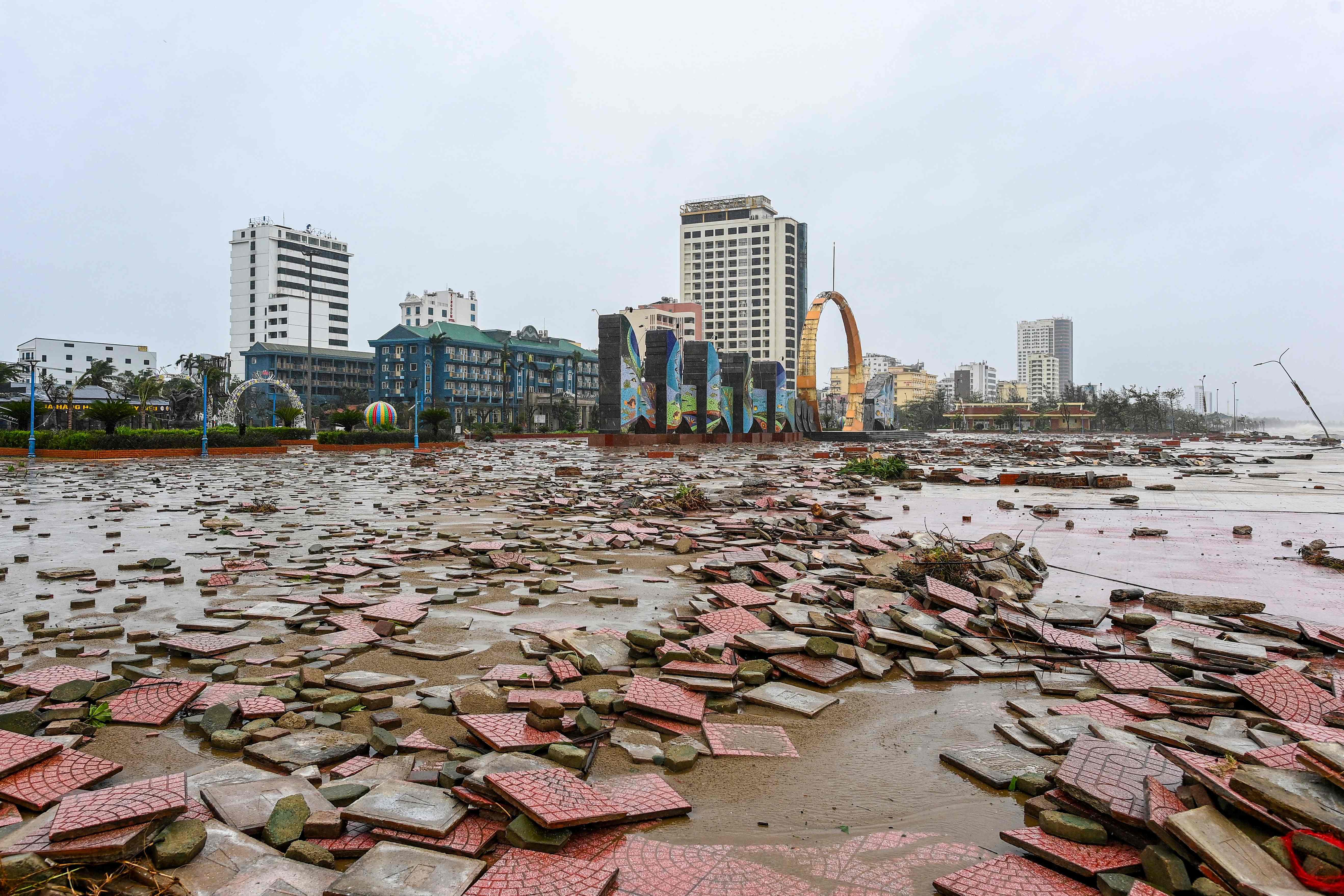 A view of Cua Lo beach damaged after typhoon Bualoi made a landfall in Nghe An province on September 29, 2025. Vietnam said it evacuated almost 30,000 residents from coastal areas on September 28, as Typhoon Bualoi hit the country's steel-producing central belt. (Photo by Thai An/AFP Photo)