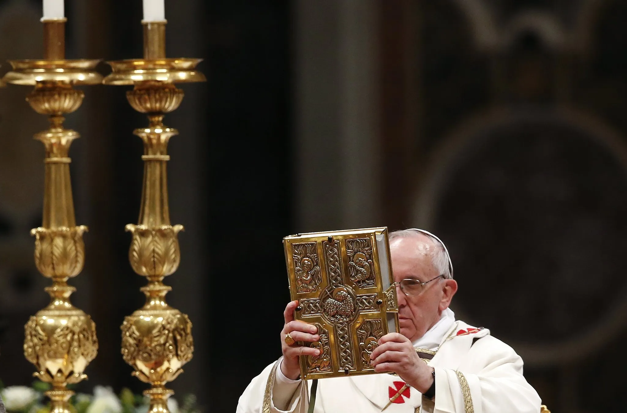 Pope Francis holds the Book of the Gospels as he leads a vigil mass during Easter celebrations at St. Peter's Basilica in the Vatican March 30, 2013. (Photo by Stefano Rellandini/Reuters)