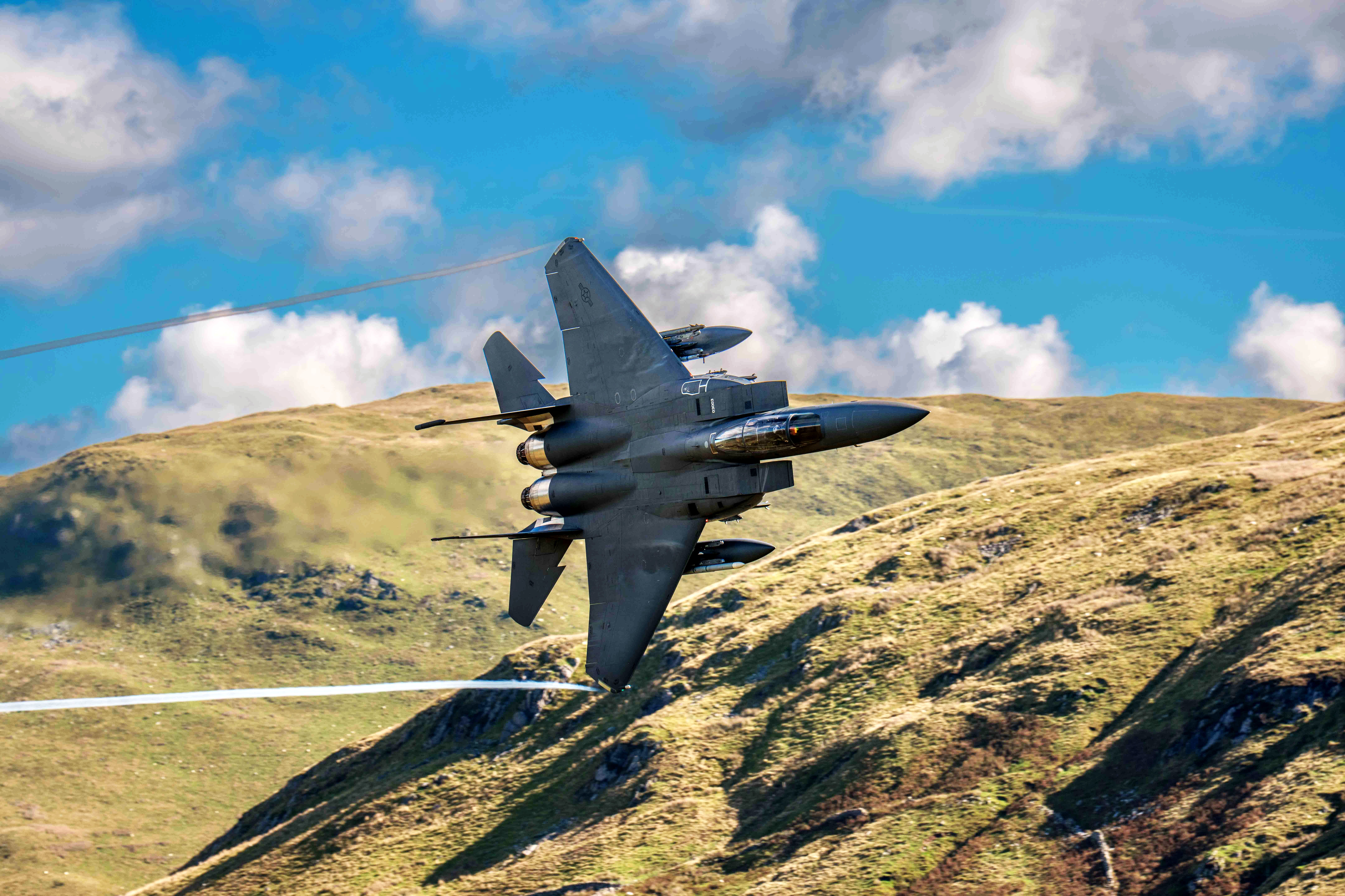 A military aircraft flies low through the Mach Loop in west-central Wales on September 25, 2025 during Cobra Warrior 25-2, one of Nato’s largest multinational air exercises. The operation, running across the UK until October 3, brings together air forces from the UK, US, Canada, Italy and Germany for three weeks of high-intensity training in challenging low-level environments. (Photo by Tony Marsh)