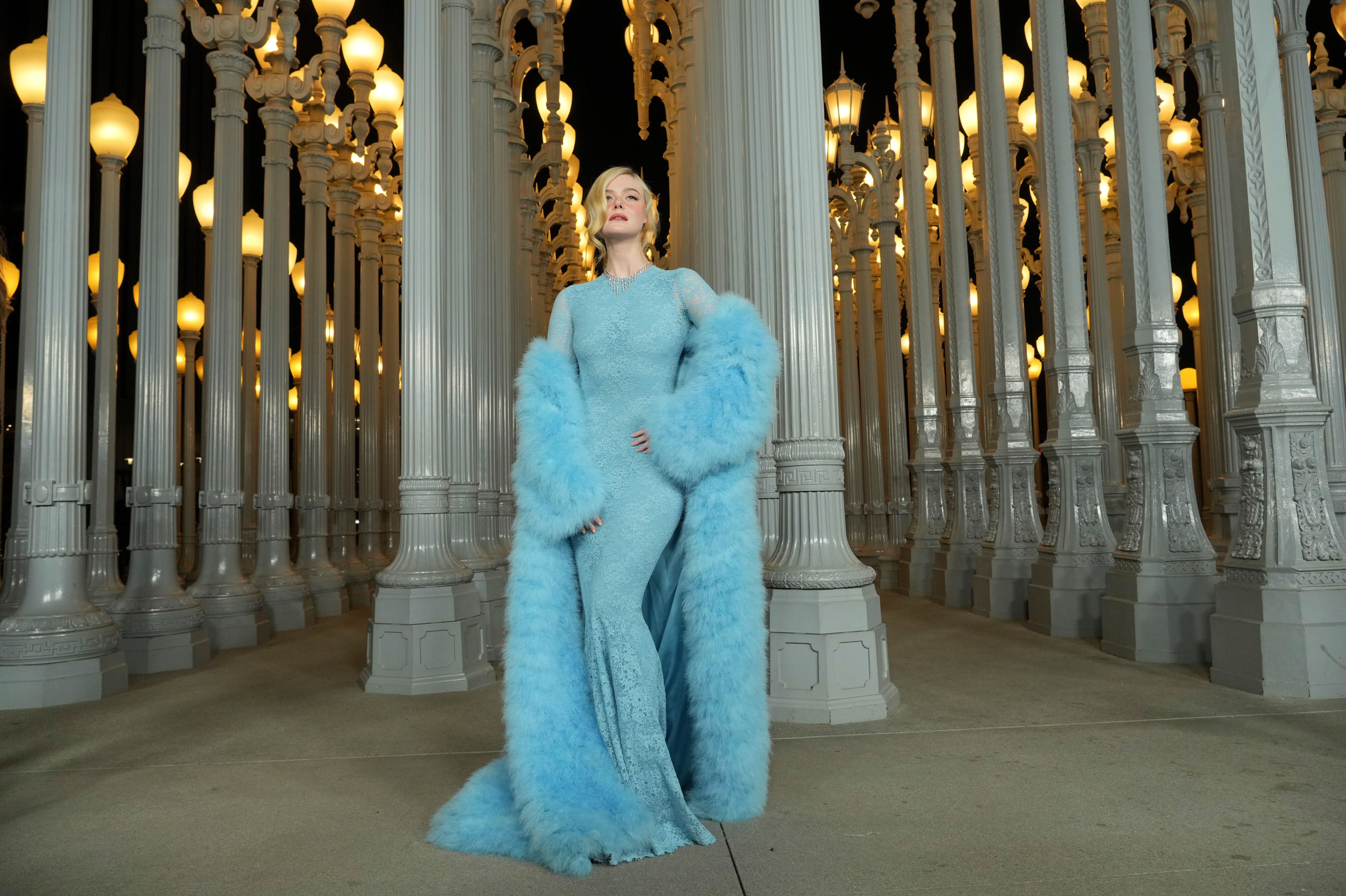 American actress Elle Fanning arrives at the LACMA Art + Film Gala on Saturday, November 1, 2025, at Los Angeles County Museum of Art in Los Angeles. (Photo by Jordan Strauss/Invision/AP)