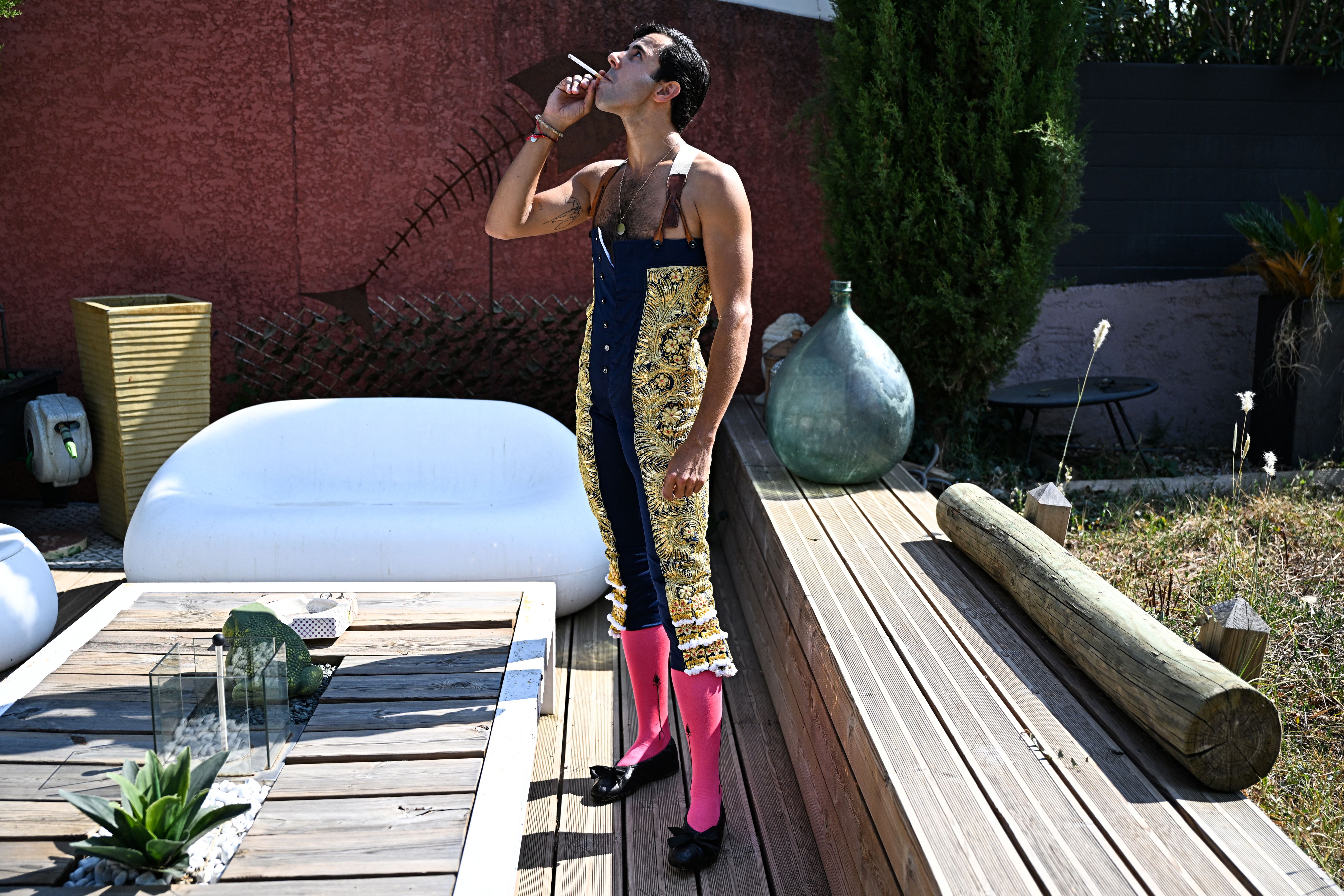 French matador Carlos Olsina smokes a cigarette as he gets ready for his bullfight as part of the Feria in Beziers, southwestern France, on August 14, 2025. (Photo by Gabriel Bouys/AFP Photo)