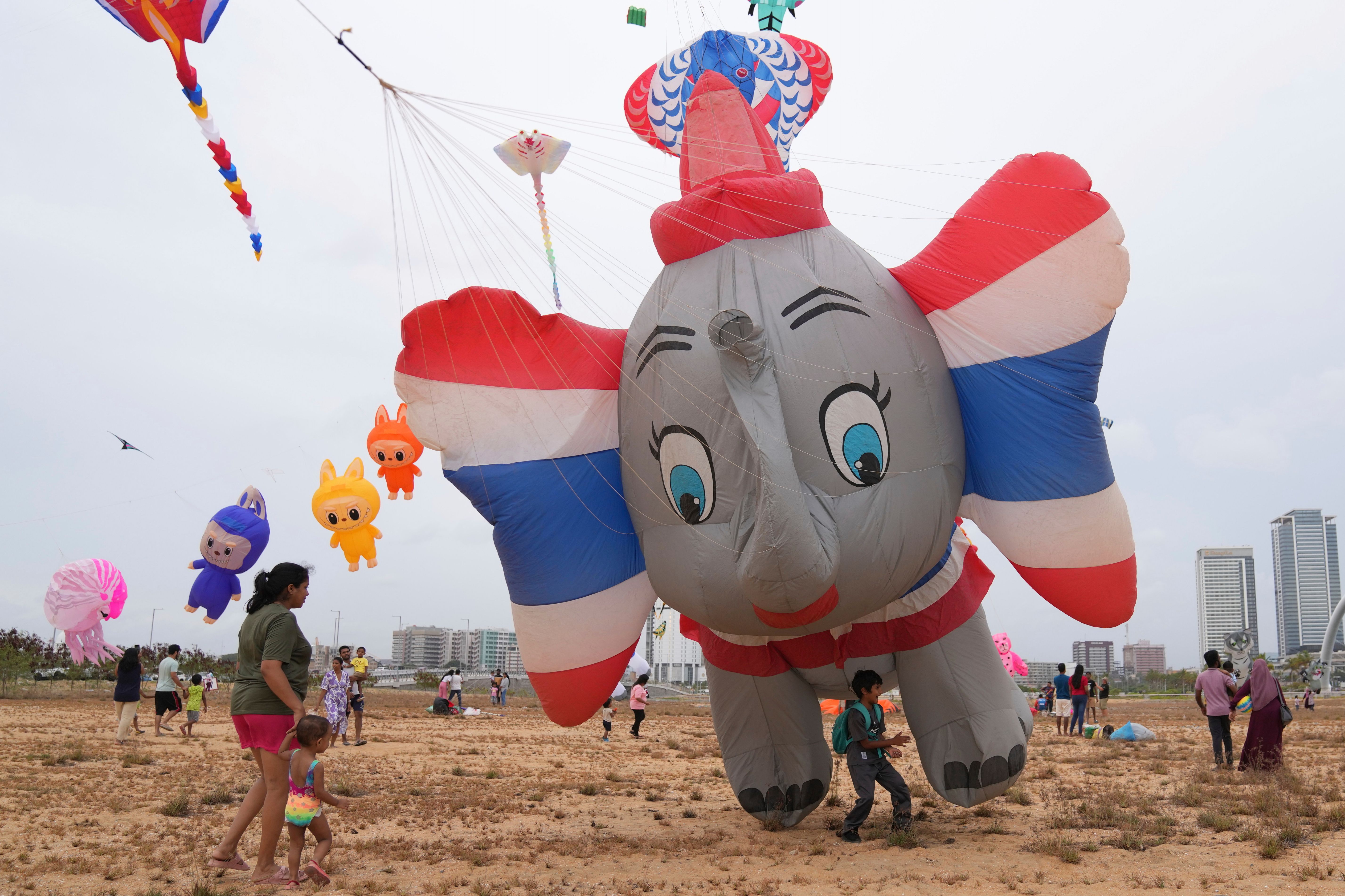 An elephant-shaped kite takes flight at the Colombo International Kite Festival in Colombo, Sri Lanka, Saturday, August 23, 2025. (Photo by Eranga Jayawardena/AP Photo)