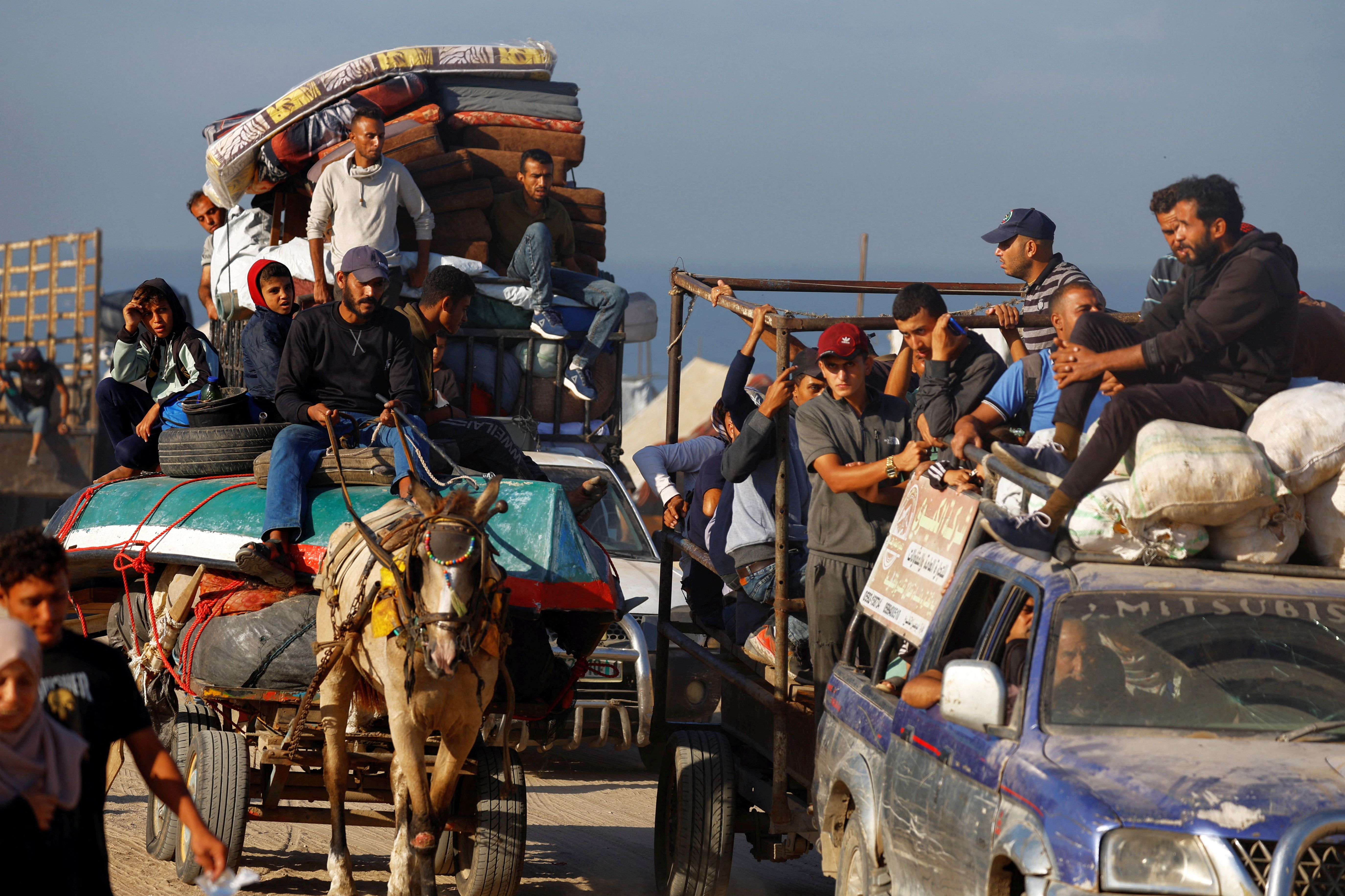 Palestinians, who were displaced to the southern part of Gaza at Israel's order, make their way along a road as they return to the north, amid a ceasefire between Israel and Hamas in Gaza, in the central Gaza Strip, on October 11, 2025. (Photo by Mahmoud Issa/Reuters)