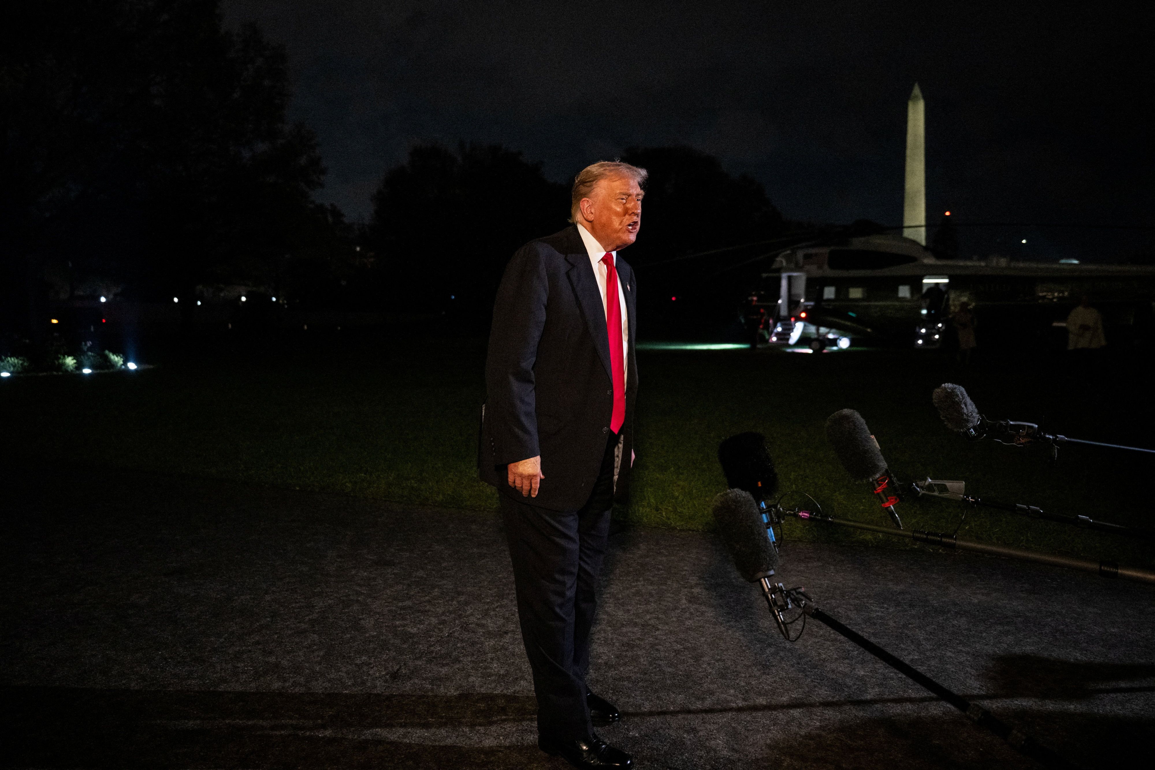 U.S. President Donald Trump speaks to press as he arrives at the White House in Washington, D.C., U.S., November 9, 2025. (Photo by Annabelle Gordon/Reuters)