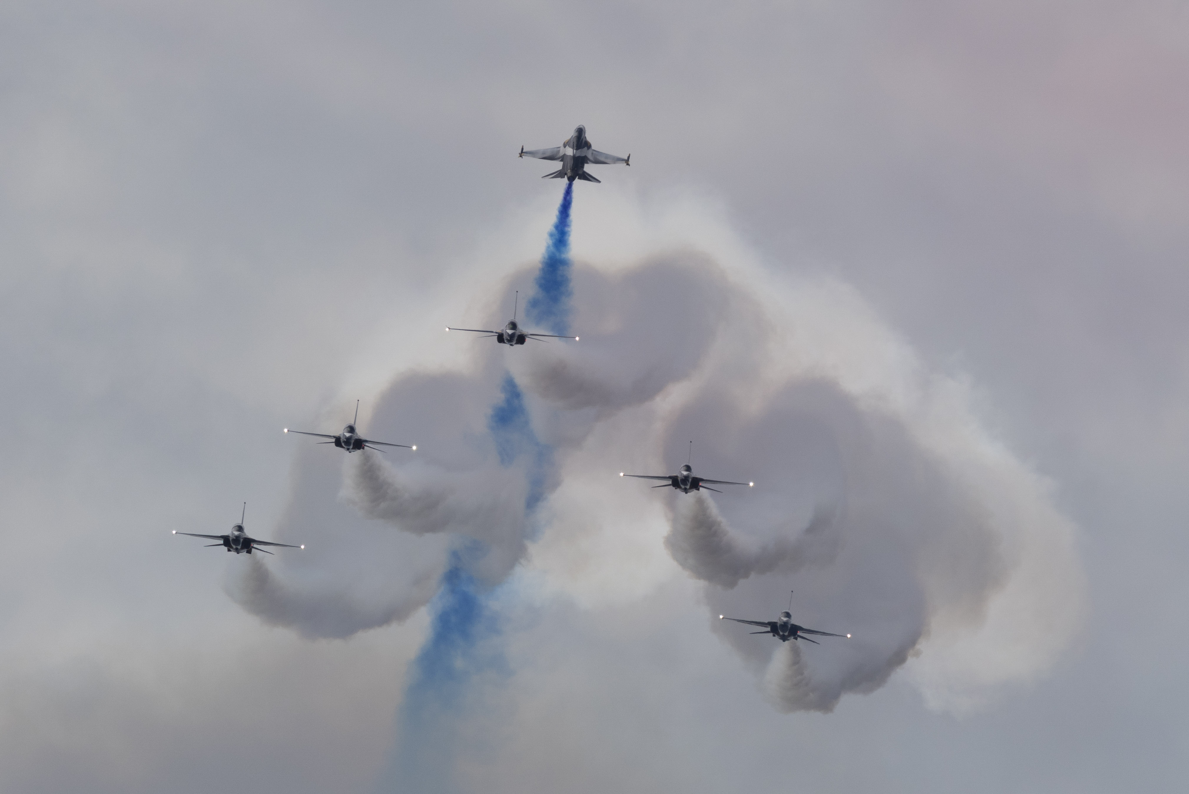South Korean Air Force aerobatics team 'Black Eagles' perform during the Seoul International Aerospace and Defense Exhibition (ADEX) 2025 at the Seoul Military Airport in Seongnam, Gyeonggi-do province, South Korea, 17 October 2025. The biennial defense exhibition run in Seongnam. (Photo by EPA/EFE/Stringer)