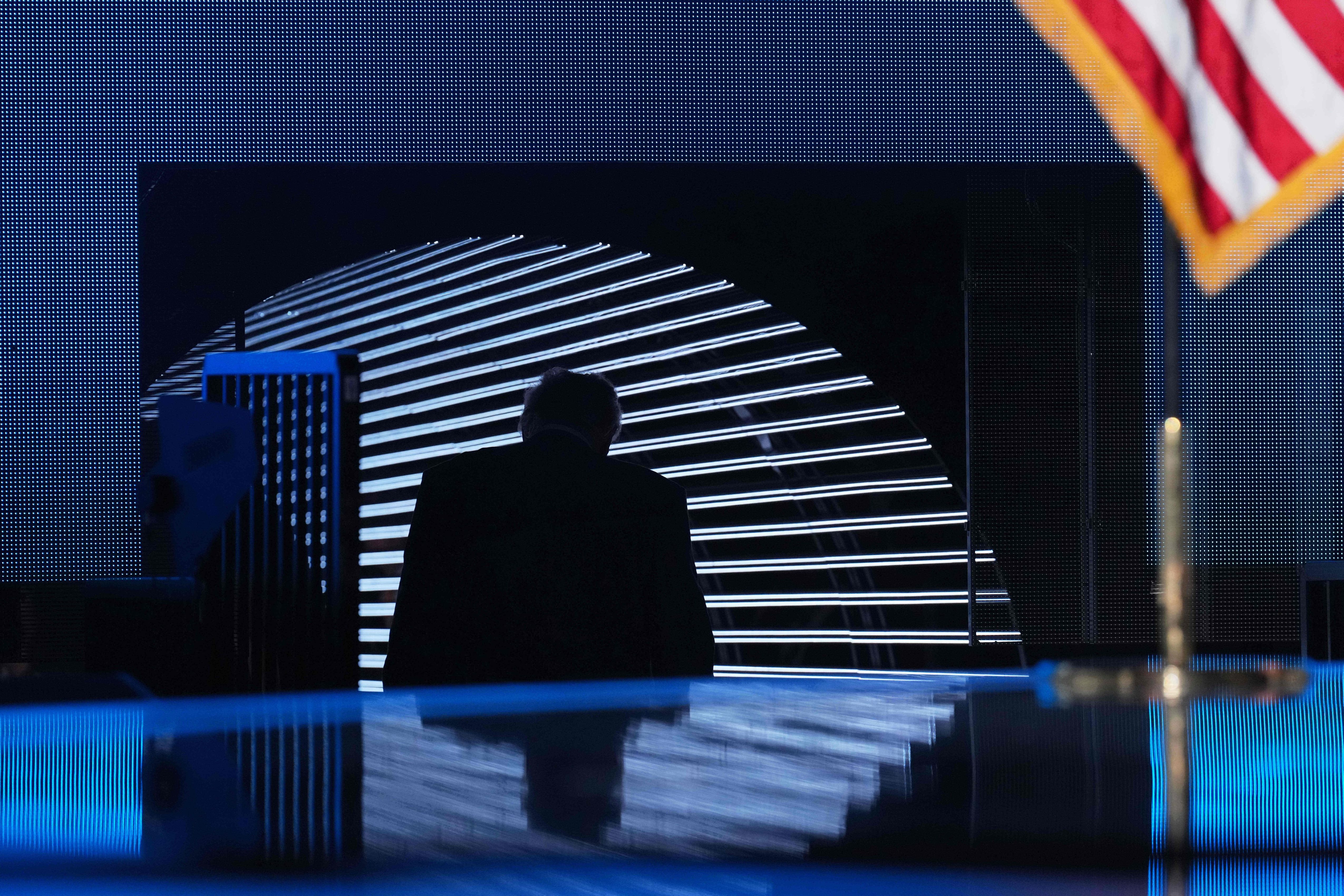 President Donald Trump departs after speaking to the America Business Forum Miami at the Kaseya Center, in Miami, November 5, 2025. (Photo by Jacquelyn Martin/AP Photo)