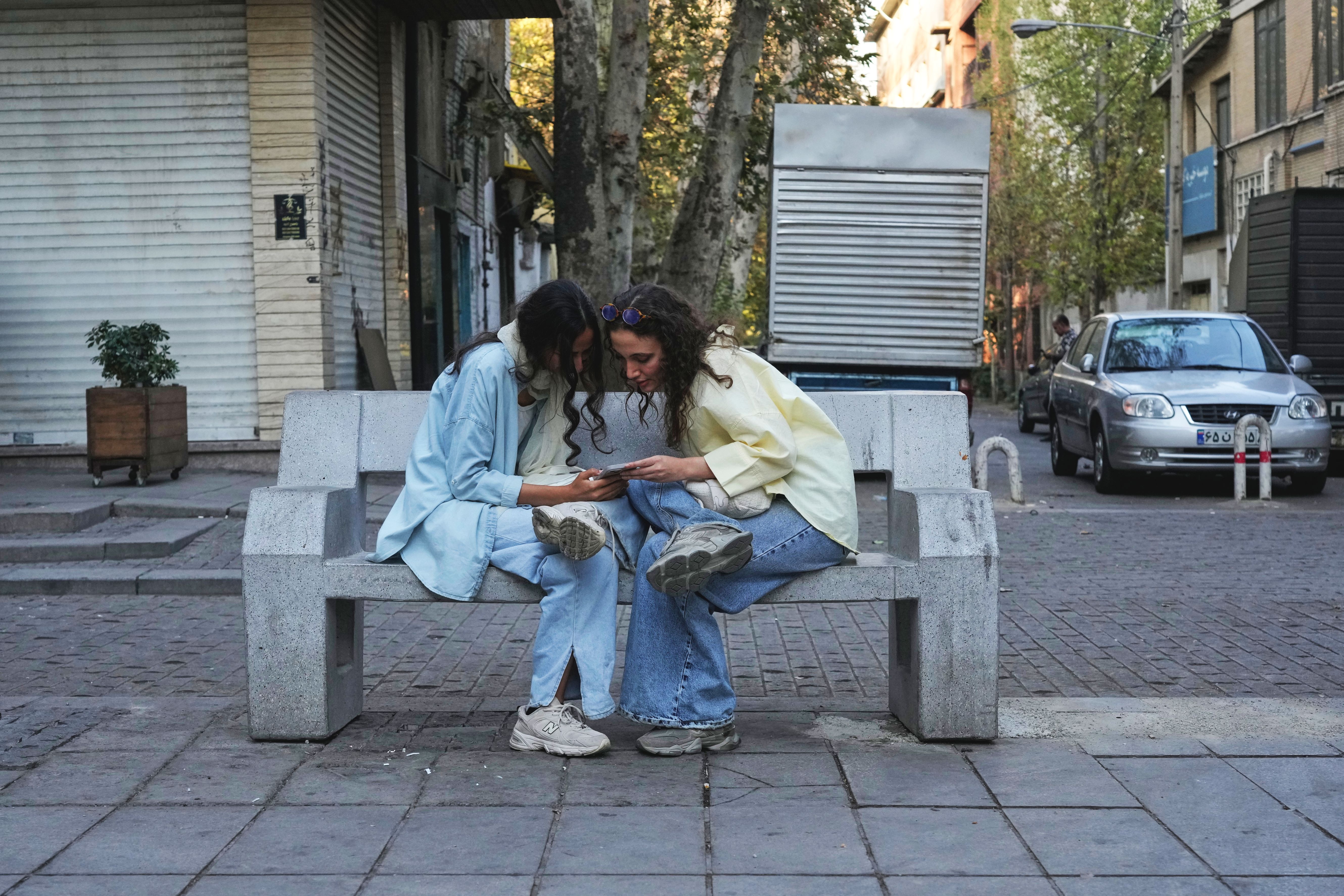 Two women use a smartphone in northern Tehran, Iran, Sunday, September 28, 2025. (Photo by Vahid Salemi/AP Photo)