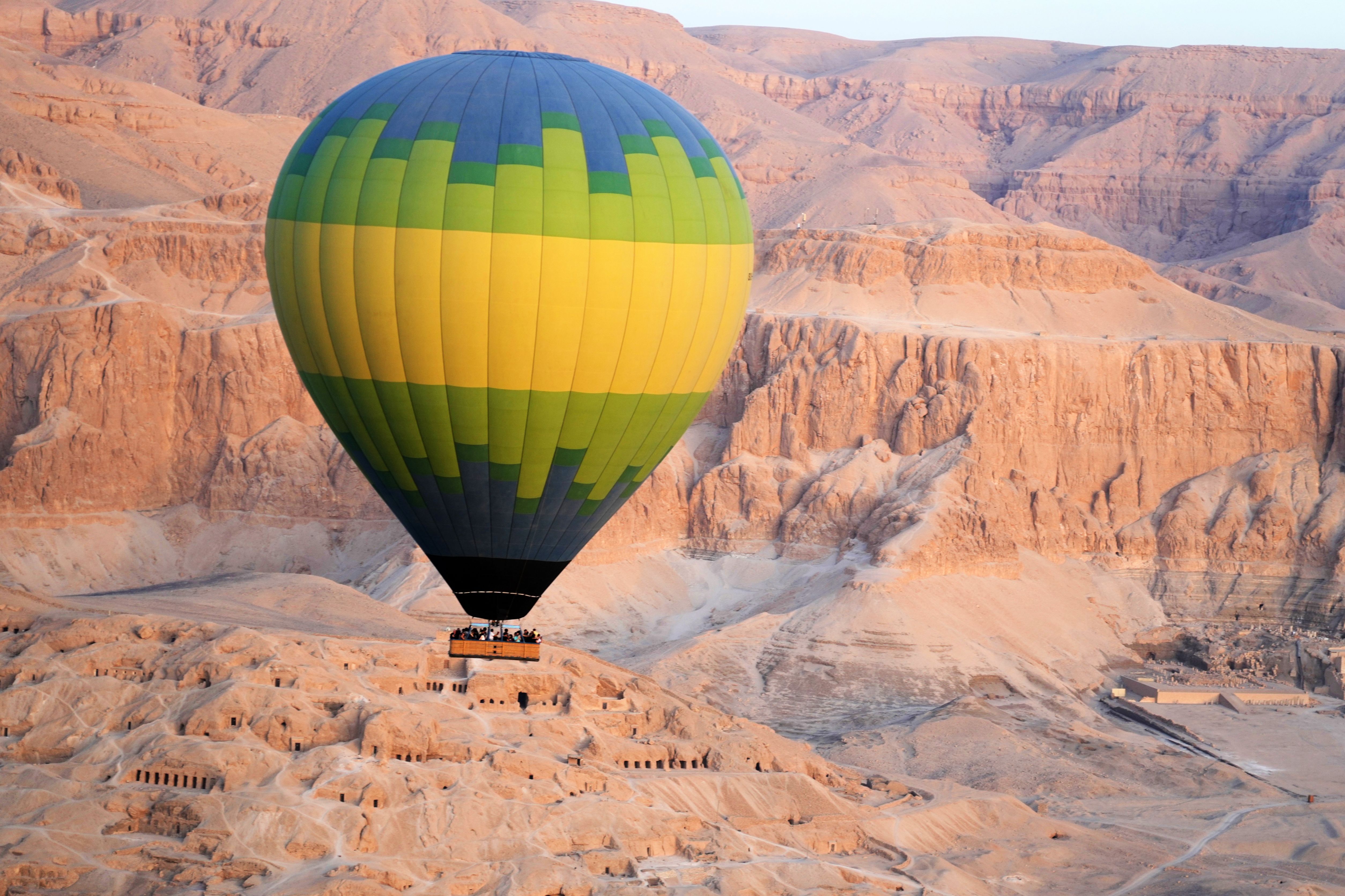 Tourists in a hot air balloon ride fly over the Valley of Kings in the southern city of Luxor, Egypt, Saturday, October 4, 2025, where the tomb of Amenhotep III, who ruled ancient Egypt between 1390 B.C. and 1350 B.C., is opened to visitors for the first time in more than two decades. (Photo by Amr Nabil/AP Photo)