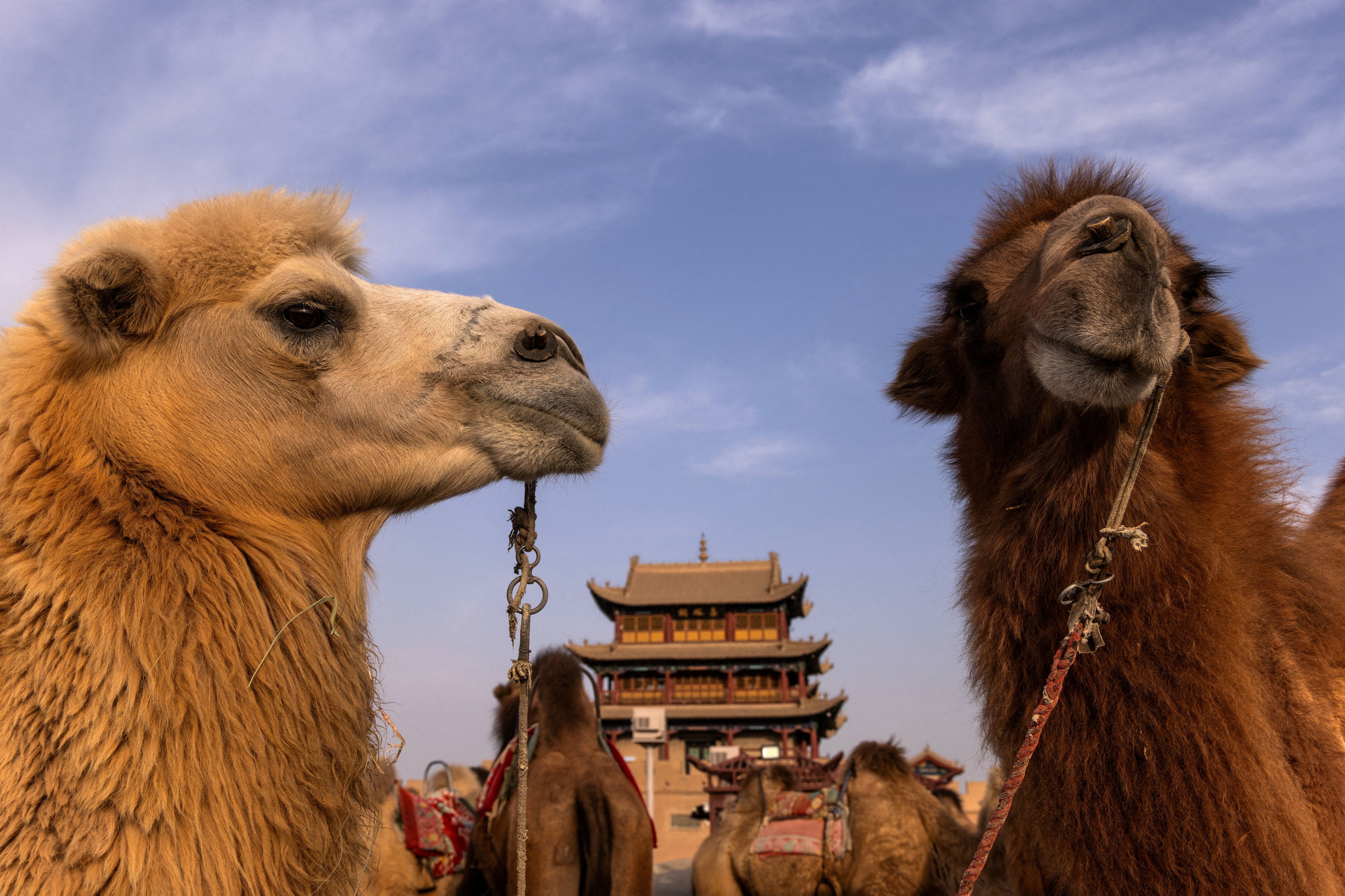 Camels stand near a tower at Jiayu Pass, a strategic point along the Great Wall and the ancient “Silk Road”, in Jiayuguan, Gansu province, China, on October 29, 2025. (Photo by Maxim Shemetov/Reuters)