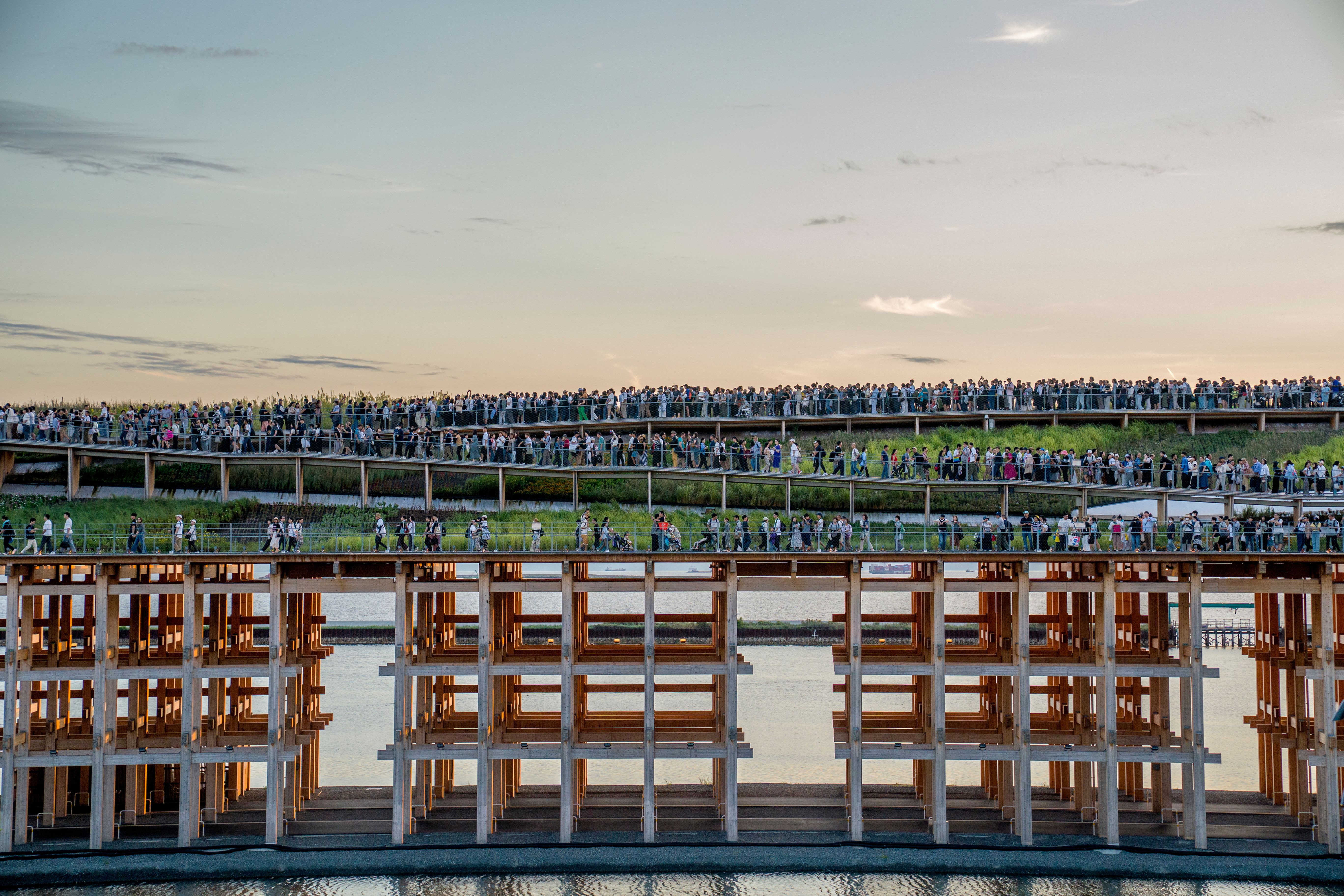 Members of the public walk around the wooden viewing ring at Osaka Expo 2025 which was visited by The Duke and Duchess of Edinburgh on day four of the royal trip to Japan on Monday, September 22, 2025. (Photo by Jane Barlow/PA Images via Getty Images)
