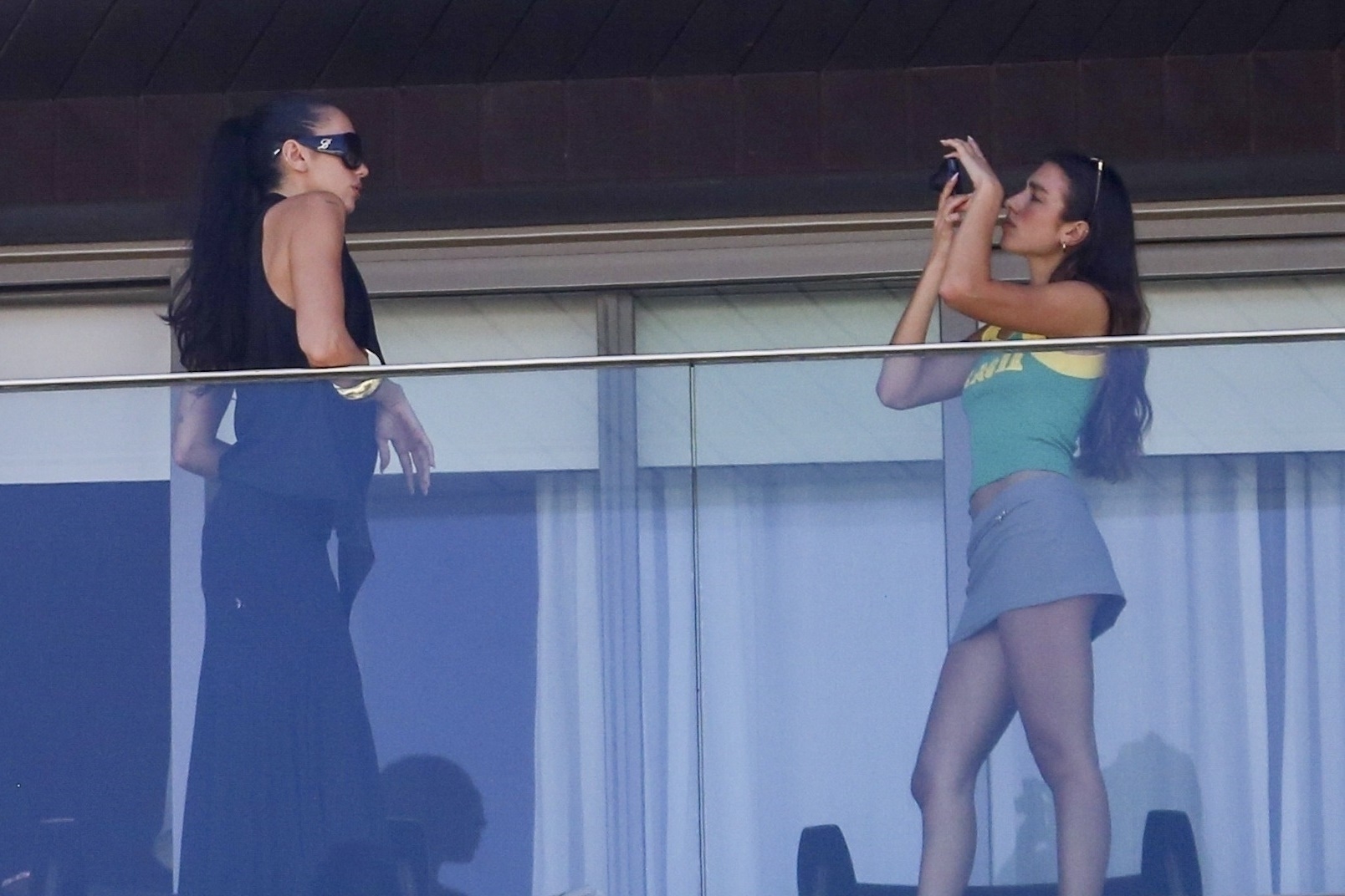 Dua Lipa was seen enjoying a fun moment with her sister, Rina Lipa, as they took photographs of each other on the balcony of Hotel Fasano in Ipanema in Rio de Janeiro on November 21, 2025. The pop star looked relaxed and carefree while capturing the stunning views of the iconic neighborhood, soaking in the vibrant atmosphere ahead of her performance at Farmasi Arena in Rio de Janeiro. (Photo by JUCE/BACKGRID)