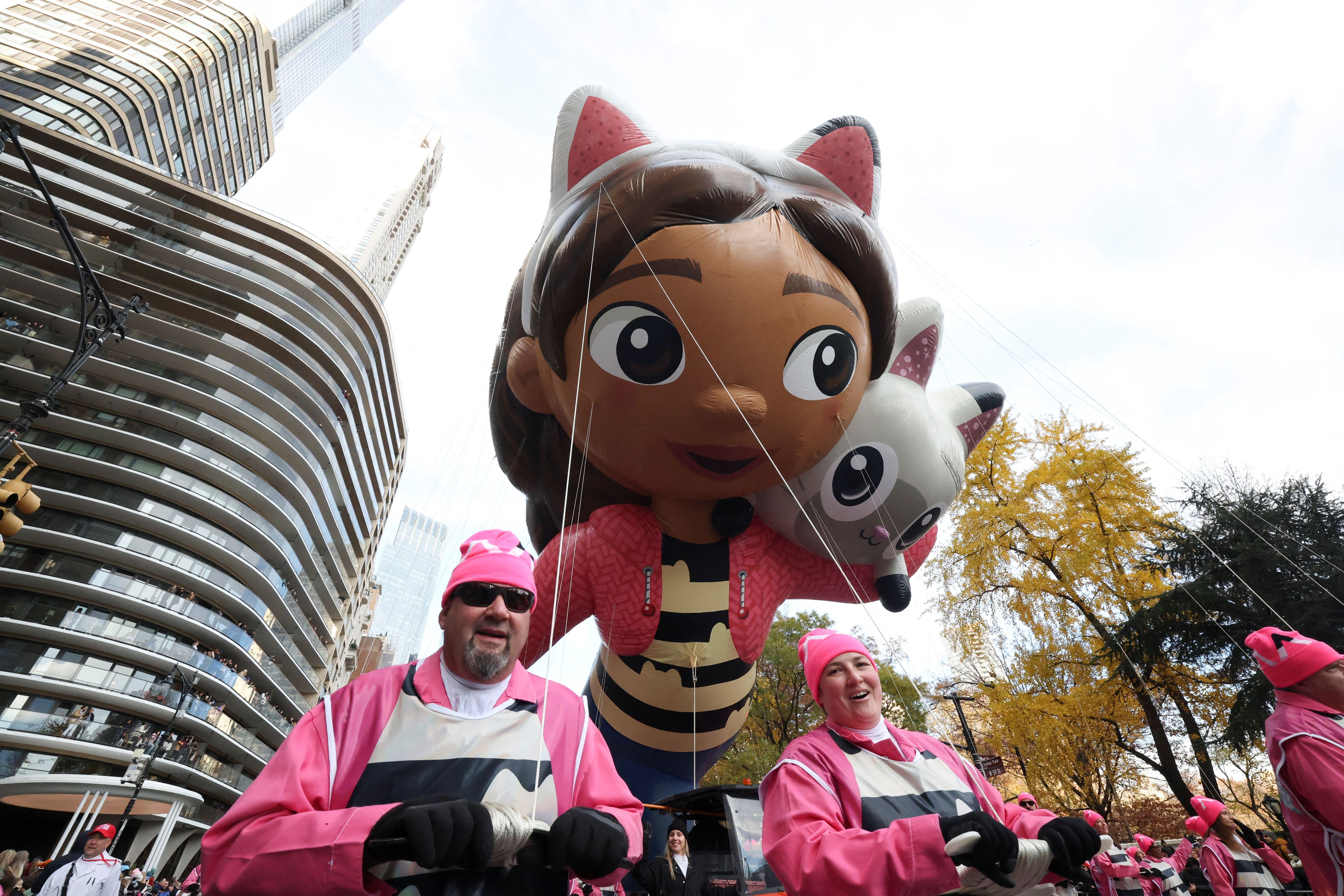 The Gabby & Pandy Paws balloon flies during the Macy's Thanksgiving Day Parade 2025, in New York City, U.S., November 27, 2025. (Photo by Brendan McDermid/Reuters)