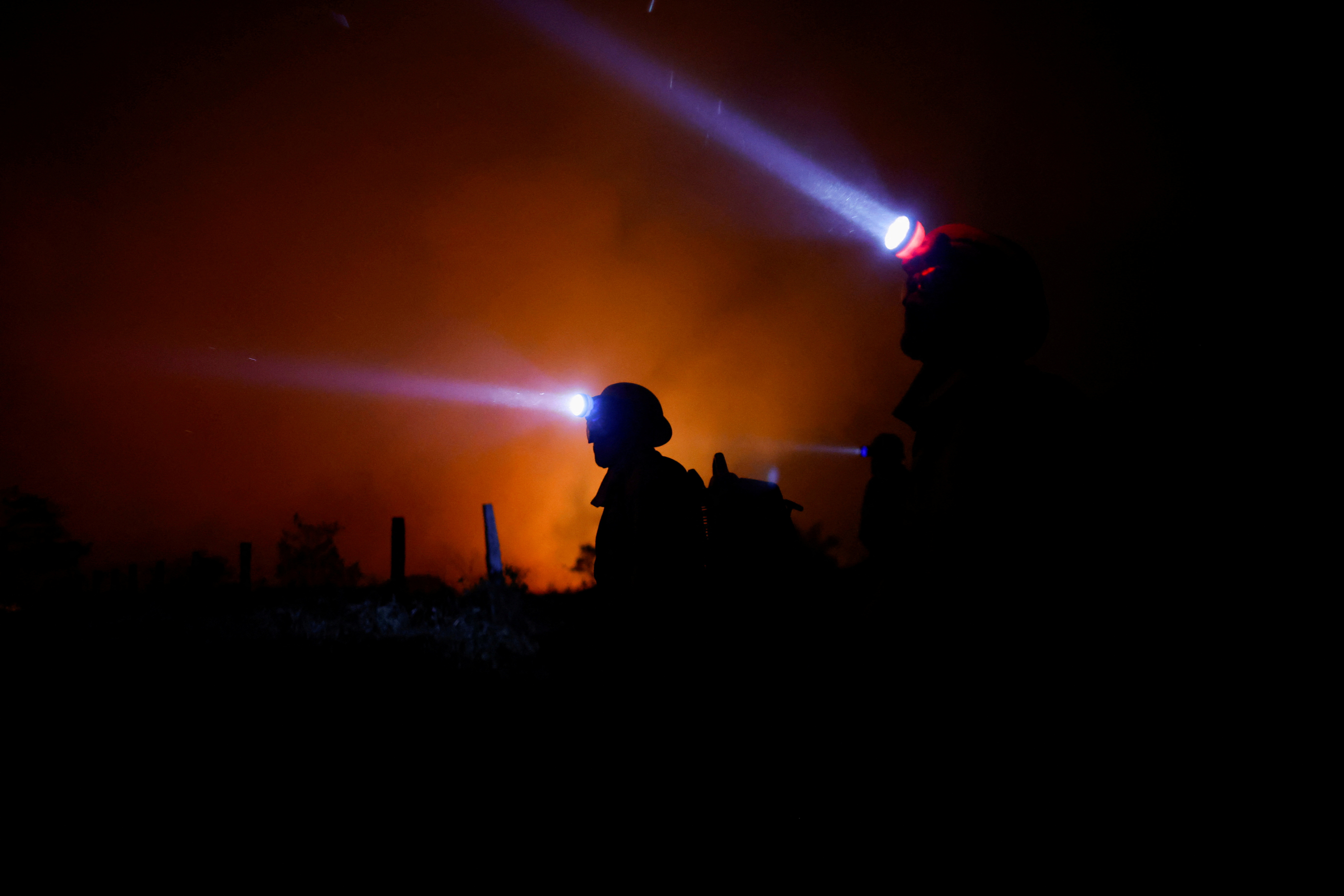 Members of Brazilian Institute for the Environment and Renewable Natural Resources (IBAMA) fire brigade work to extinguish a fire rising in Amazon rainforest in Apui, Amazonas state, Brazil, on August 8, 2024. (Photo by Adriano Machado/Reuters)