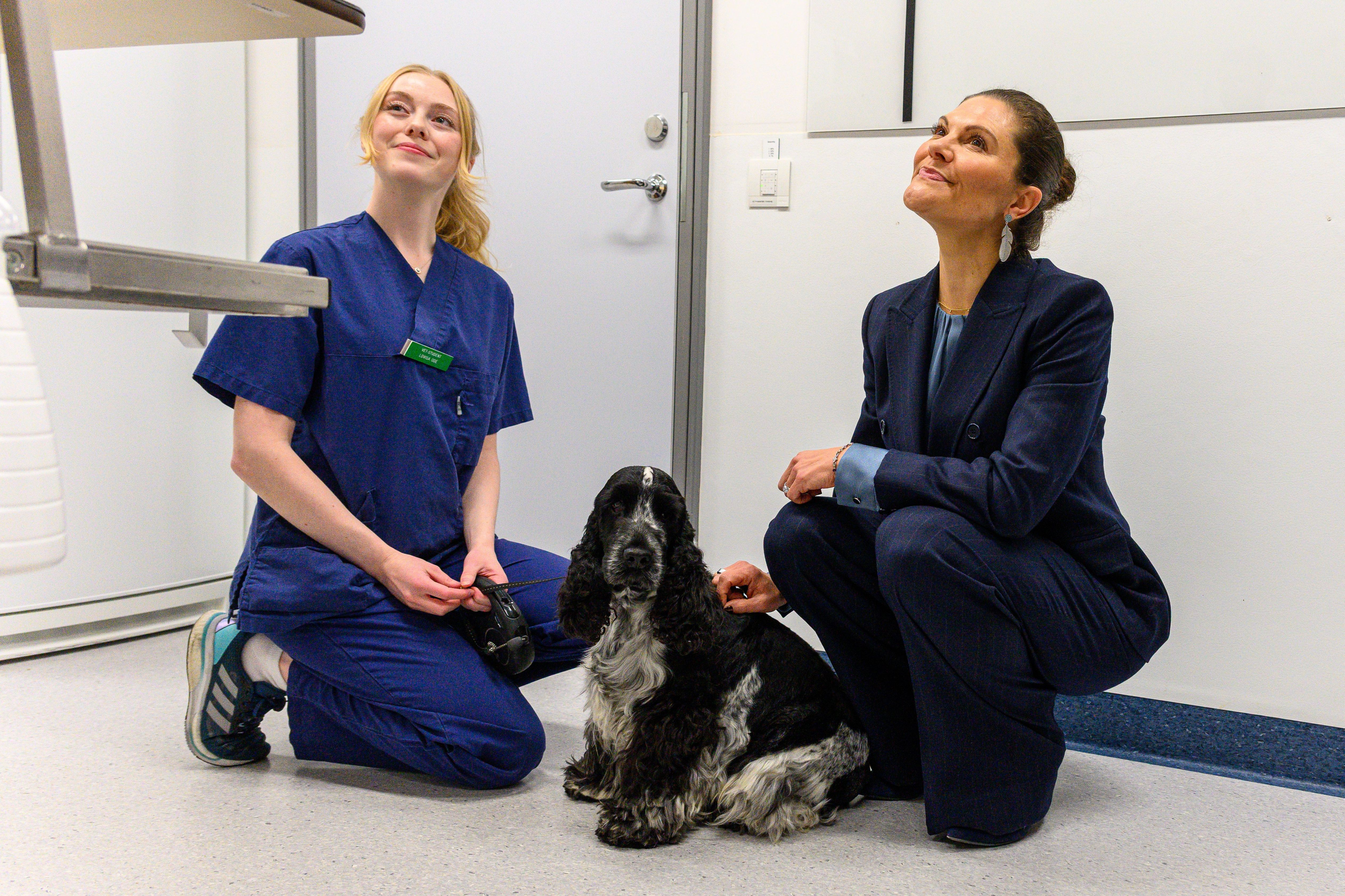 Student Lovisa Ode (left) and Crown Princess Victoria pet a dog during celebrations marking the 250th anniversary of Swedish veterinary medicine at the Swedish University of Agriculture (SLU) in Uppsala, Sweden on November 27, 2025. (Photo by SPA/Rex Features/Shutterstock)
