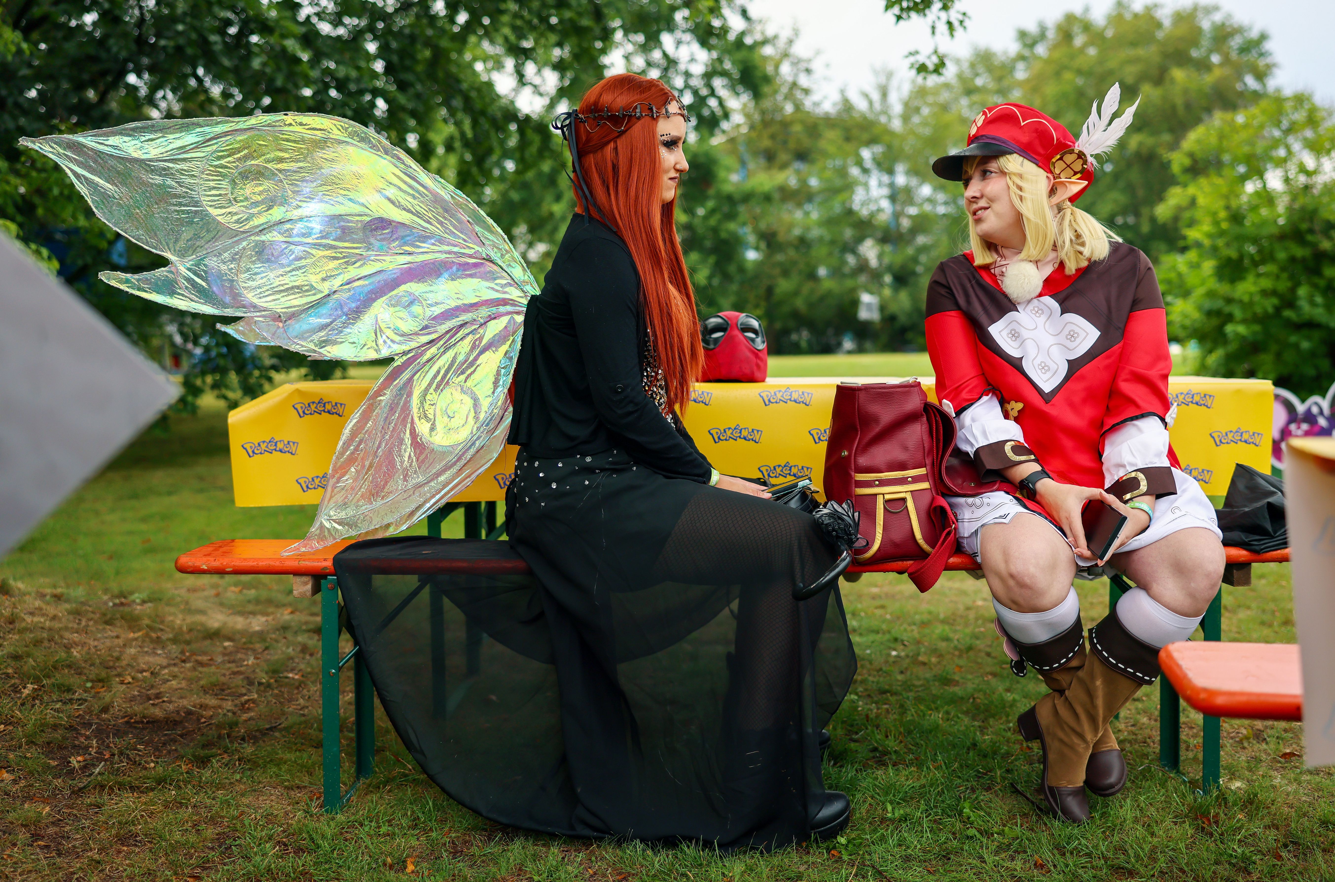 Costumed visitors attend the Elbenwald Festival at the Spreeauenpark in Cottbus, Germany, 02 August 2024. The festival is primarily a three-day gathering for fans of popular science fiction and fantasy series such as Harry Potter, Star Wars, Lord of the Rings, or Marvel Comics. About 15,000 visitors are expected to attend. (Photo by Hannibal Hanschke/EPA)
