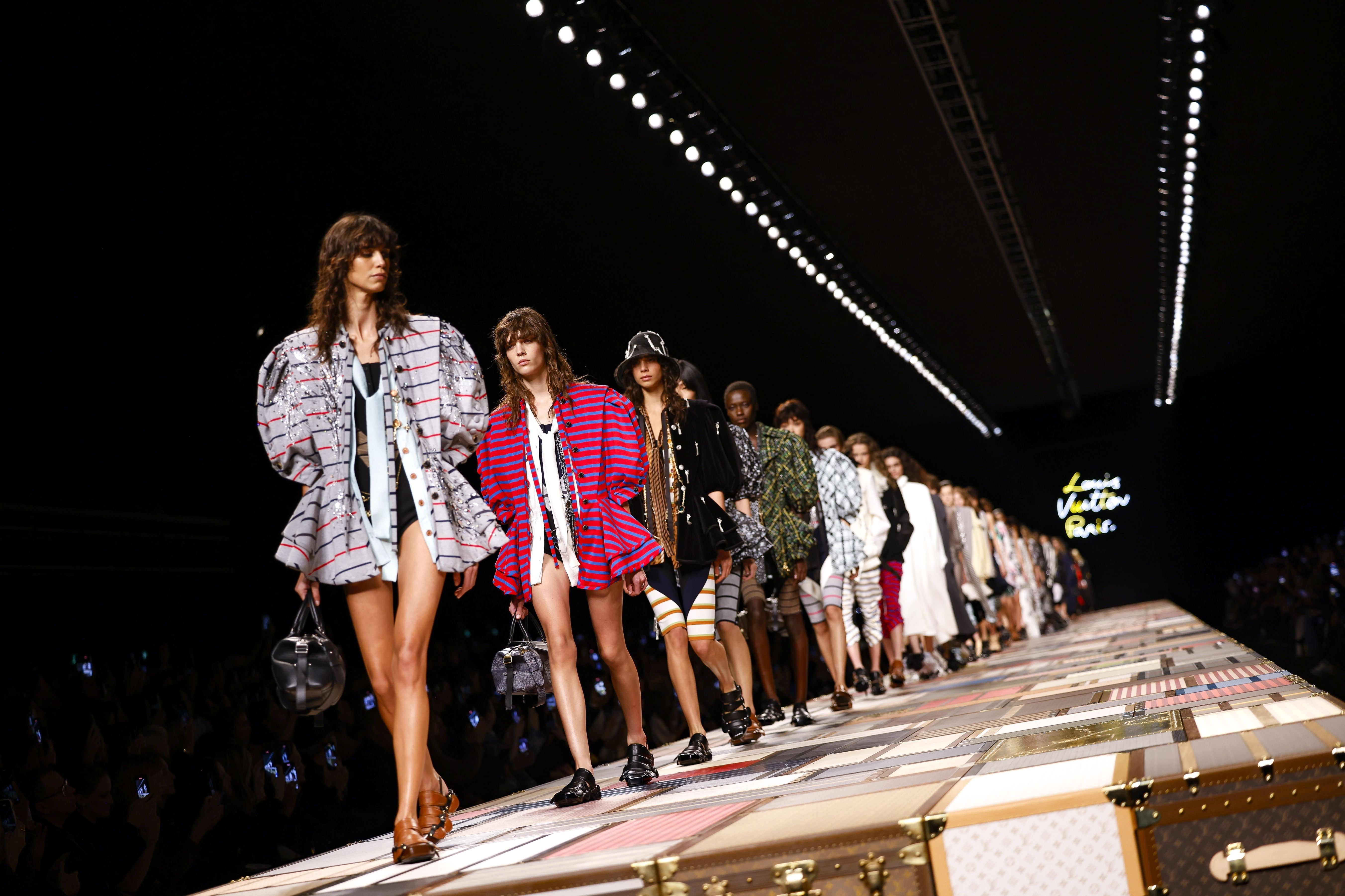 Models wear creations as part of the Louis Vuitton Spring/Summer 2025 collection presented Tuesday, October 1, 2024, in Paris. (Photo by Vianney Le Caer/Invision/AP Photo)
