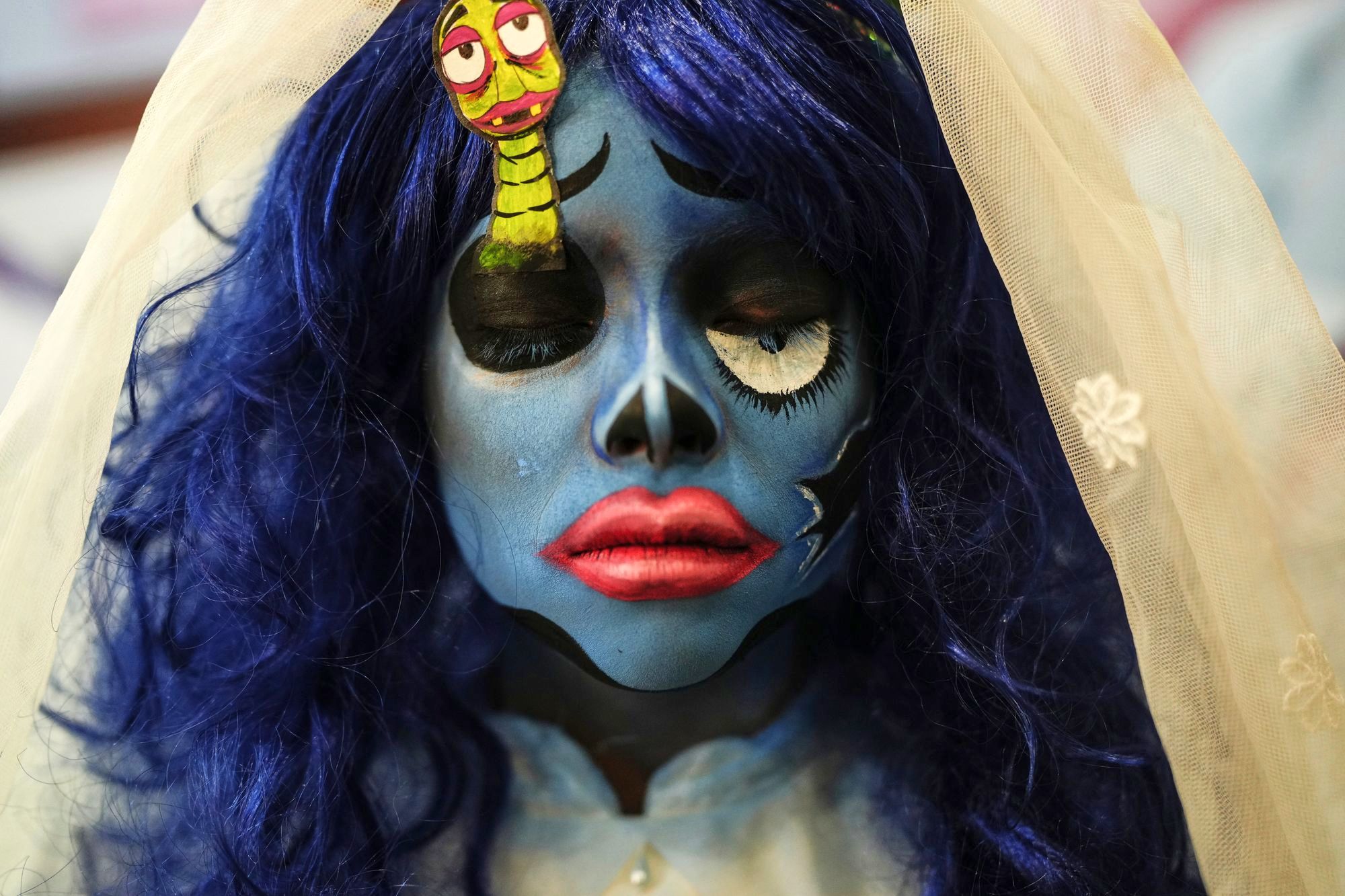 A cosplay summit attendee poses for a photo in costume in Bogota, Colombia, Sunday, October 13, 2024. (Photo by Ivan Valencia/AP Photo)
