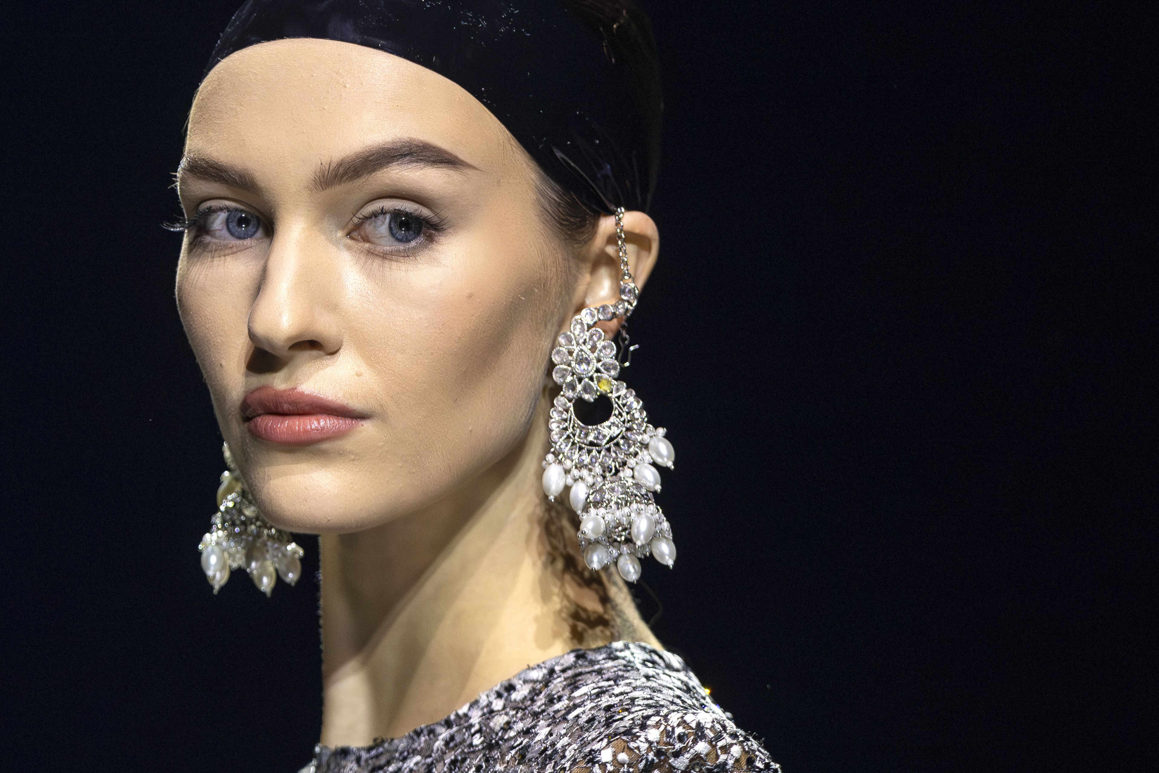 A model presents a creation from the Lithuanian designer Juozas Statkevicius' Haute Couture Spring-Summer 2025 fashion collection in Vilnius, Lithuania, Friday, November 15, 2024. (Photo by Mindaugas Kulbis/AP Photo)