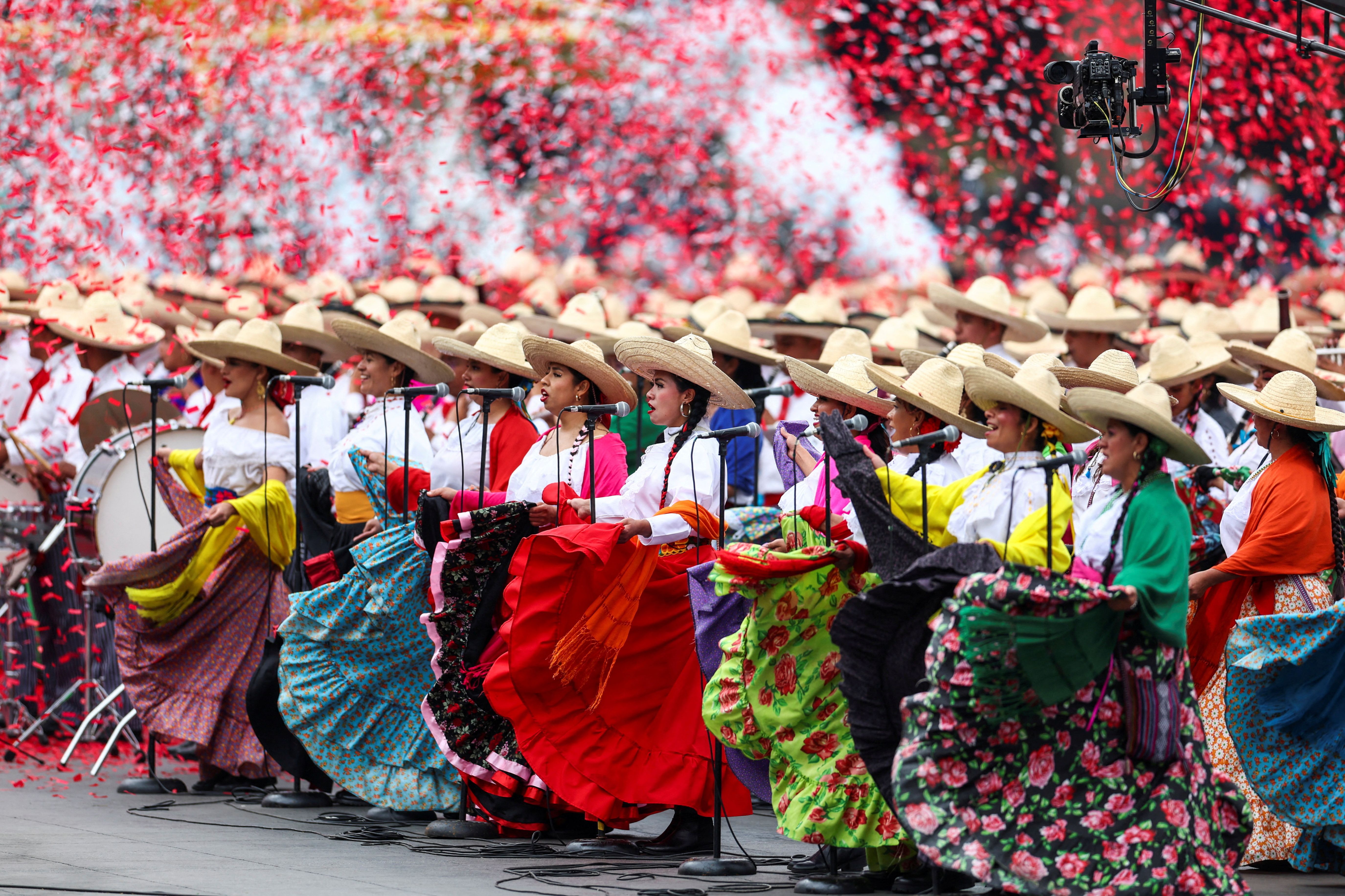 Participants in historical costumes attend the celebrations to mark the 114th anniversary of the Mexican Revolution, in Mexico City, Mexico on November 20, 2024. (Photo by Raquel Cunha/Reuters)