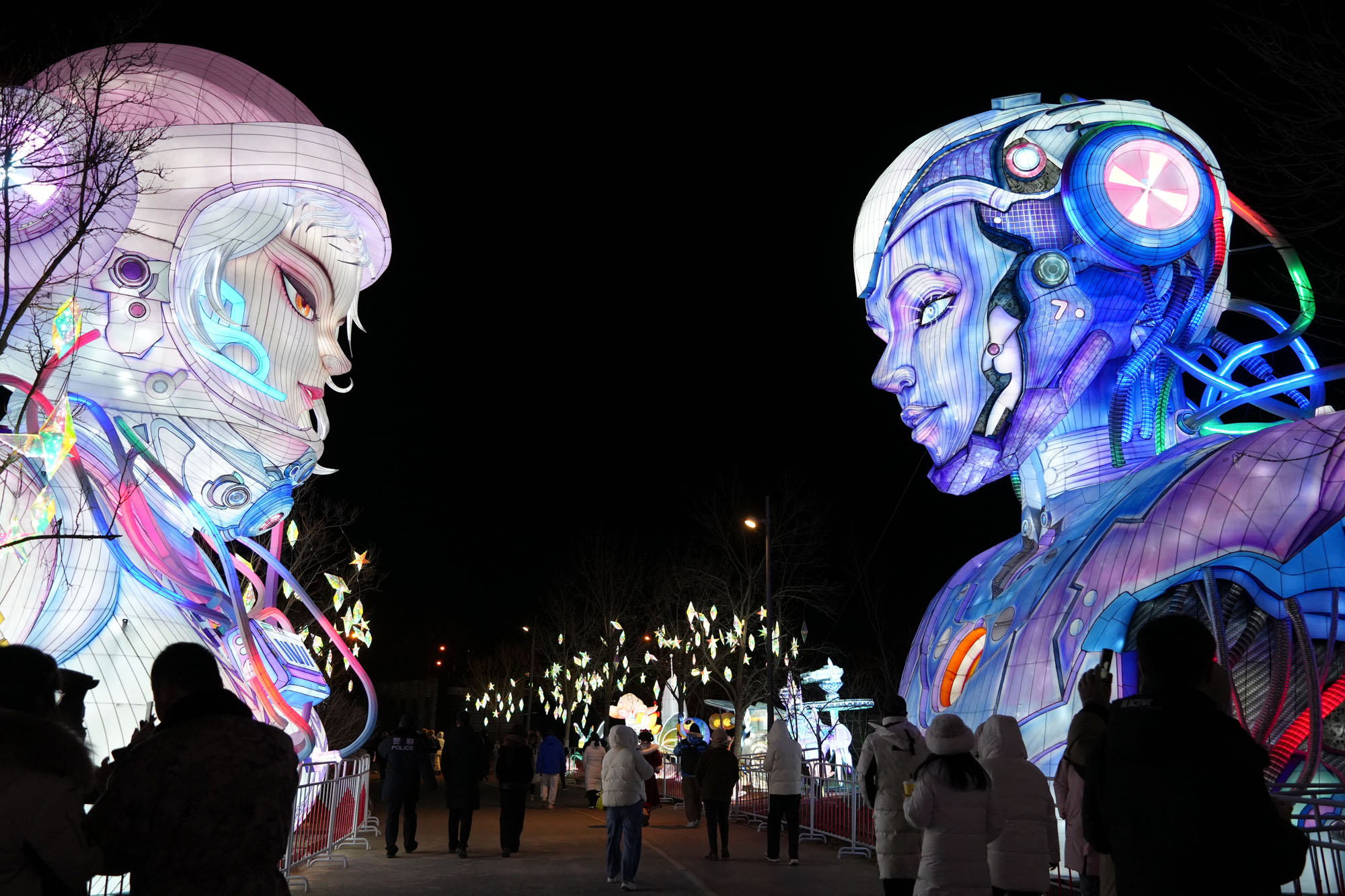 Multicolored lantern installations are illuminated during the 2025 Beijing Megalights Wonderland at Wenyuhe Park on December 28, 2024 in Beijing, China. A fabulous lantern show called “Beijing Thousand Lantern Night”, kicks off on December 28 and lasts till March 2025, showcasing over a thousand sets of colorful Zigong lanterns, using the shimmering lights to display the excellent traditional Chinese culture, allowing the visitors to immerse themselves in the joyful atmosphere. (Photo by VCG/VCG via Getty Images)