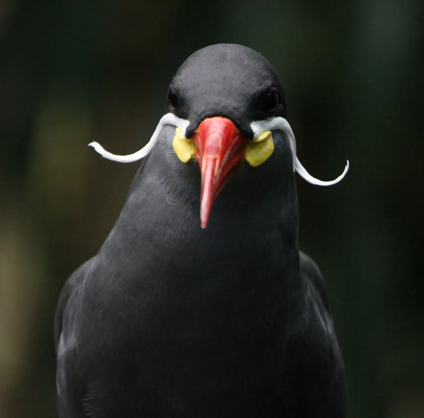 The Inca Tern is a seabird in the family Sternidae. It is the only member of the genus Larosterna. This uniquely plumaged bird breeds on the coasts of Peru and Chile, and is restricted to the Humboldt current. It can be identified by its dark grey body, white moustache on the both sides of its head, and red-orange beak and feet.