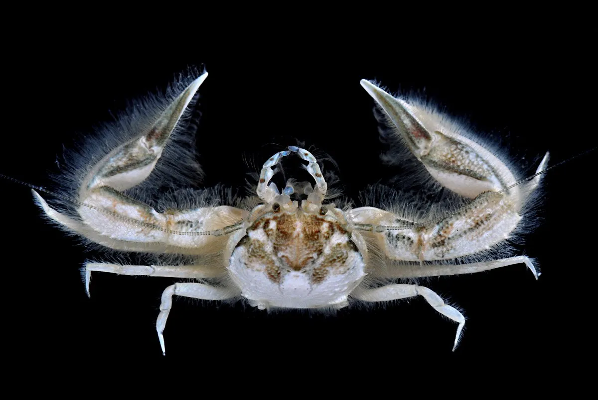 Hairy porcelain crab (Raphidopus cf ciliatus); Straits of Johore, October 2012. (Photo by Arthur Anker)