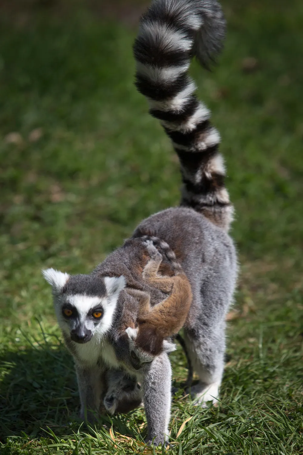 A young ring-tailed lemur with his mother in their enclosure in Wroclaw's Zoo in Wroclaw, Poland, 27 April 2013. Five lemurs were born two weeks ago at the Zoo. (Photo by Maciej Kulczynski/EPA)