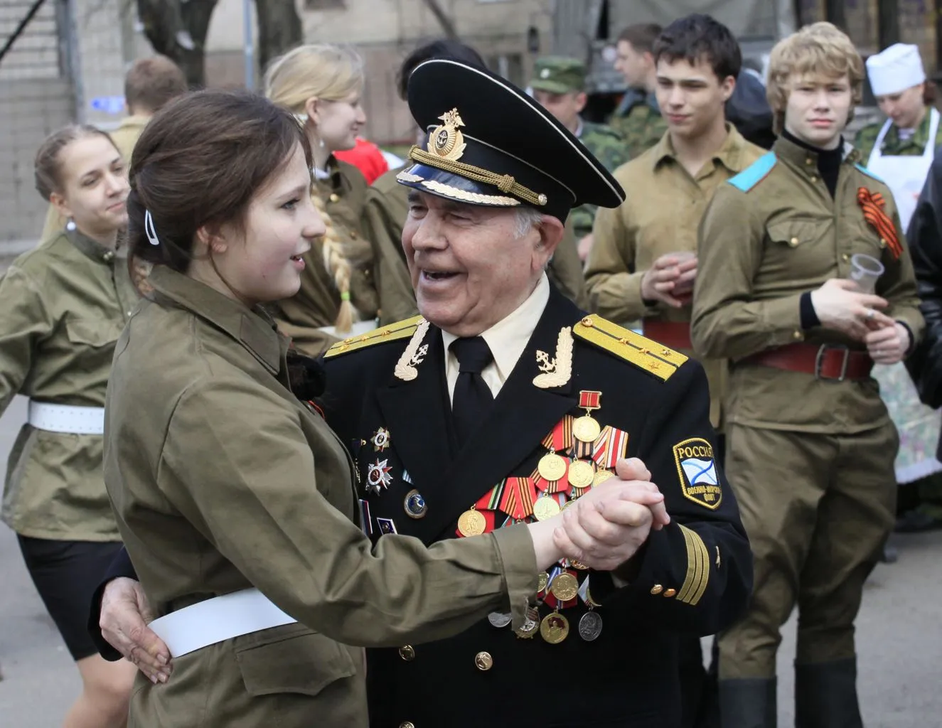 A World War Two veteran dances with a girl dressed in a Red Army uniform during a street performance ahead of Victory Day in the Russian Siberian city of Krasnoyarsk, May 7, 2013. (Photo by Ylia Naymushin/Reuters)