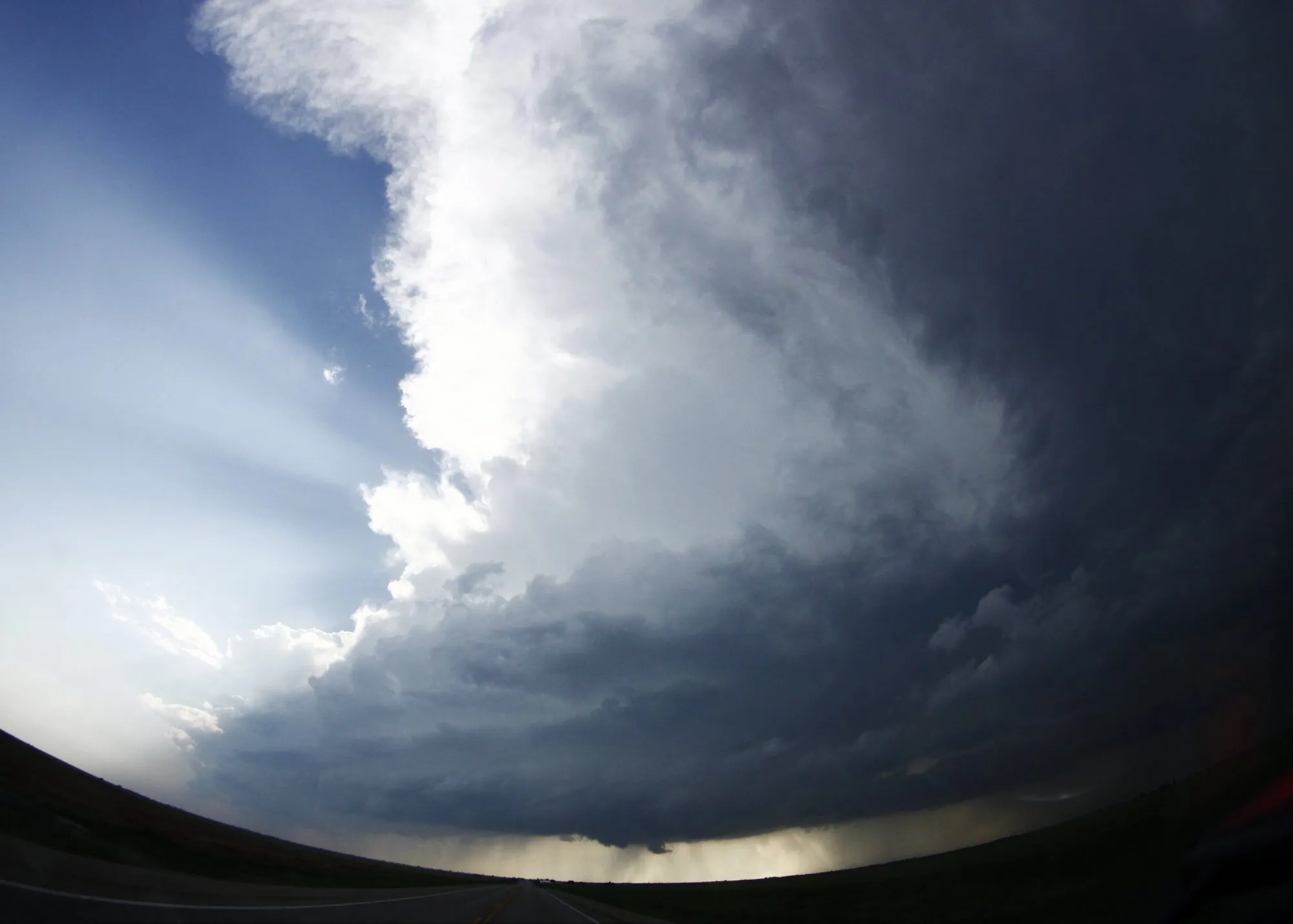 A tornadic thunderstorm approaches near South Haven, in Kansas May 19, 2013. A massive storm front swept north through the central United States on Sunday, hammering the region with fist-sized hail, blinding rain and tornadoes, including a half-mile wide twister that struck near Oklahoma City. (Photo by Gene Blevins/Reuters)
