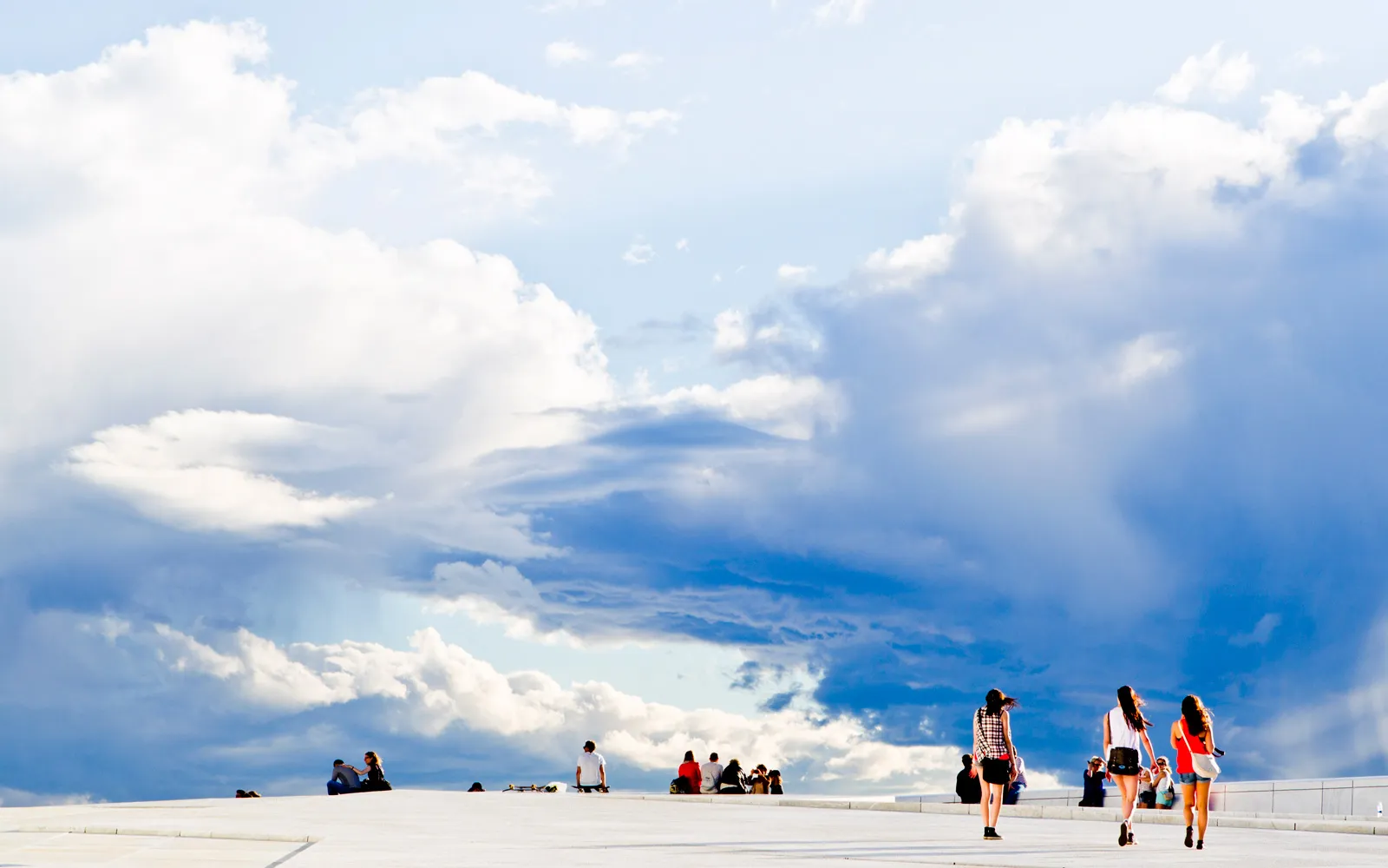 People walk on the roof of the Oslo Opera House, Norway, on June 19, 2013. (Photo by Vegard Grott/AFP Photo)