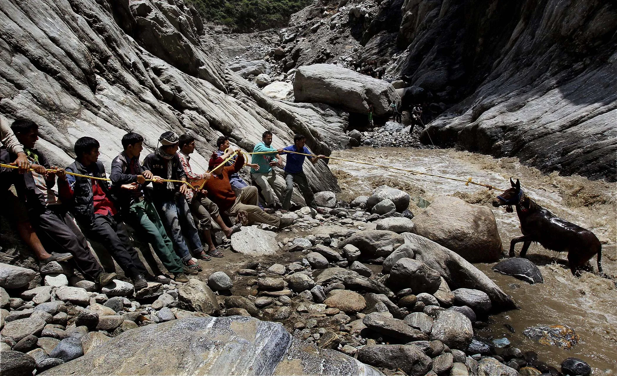 A pony is rescued from the Mandakini River at Gauri Kund, in the northern Indian state of Uttarakhand, on June 21, 2013. Heavy rains caused by the annual monsoon have left more than 500 people dead and stranded tens of thousands, mostly pilgrims, in India’s northern mountainous region, officials said Friday. (Photo by Associated Press)