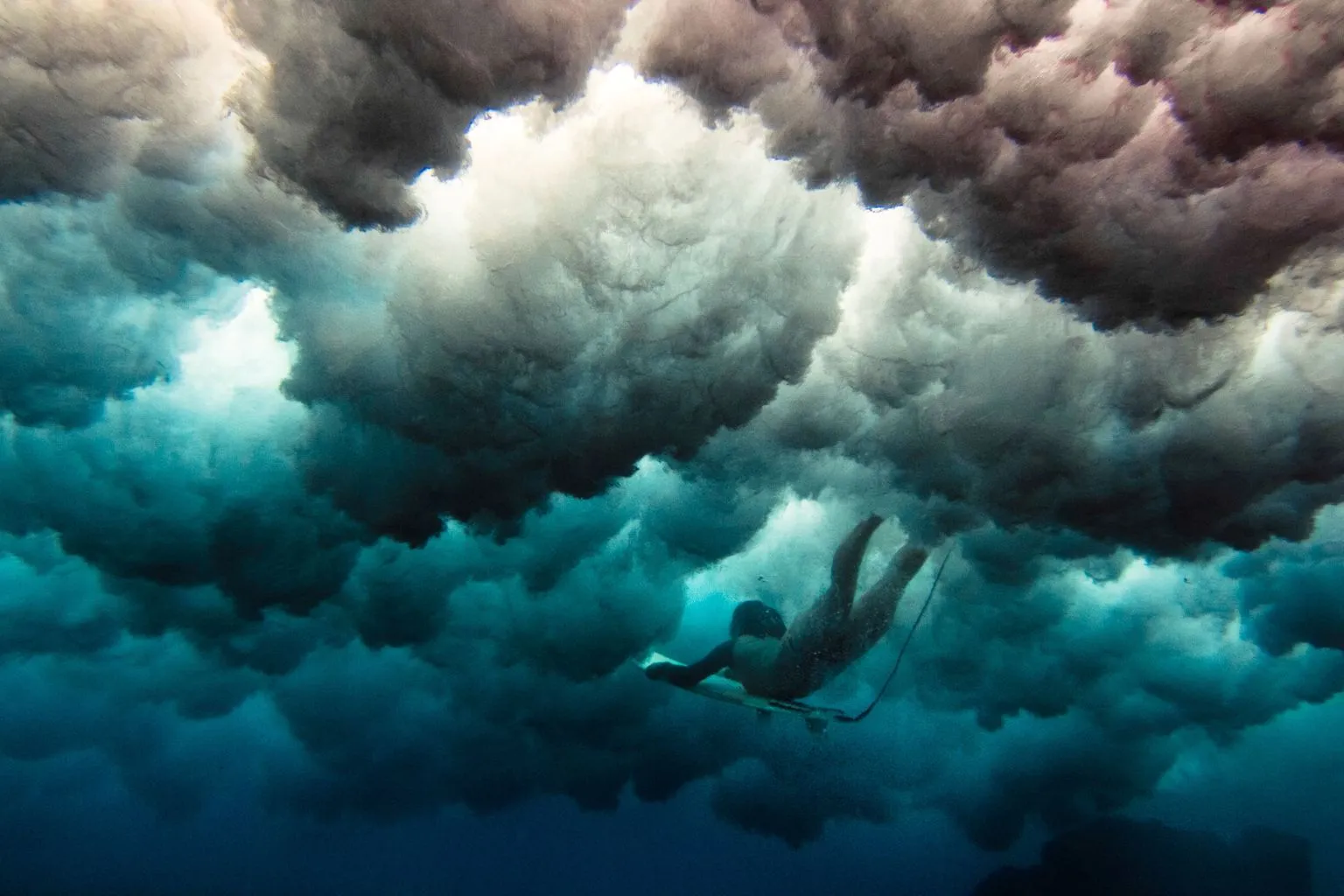Surfer Miyana Tohara duck diving beneath the waves. (Photo by Sarah Lee/Caters News)