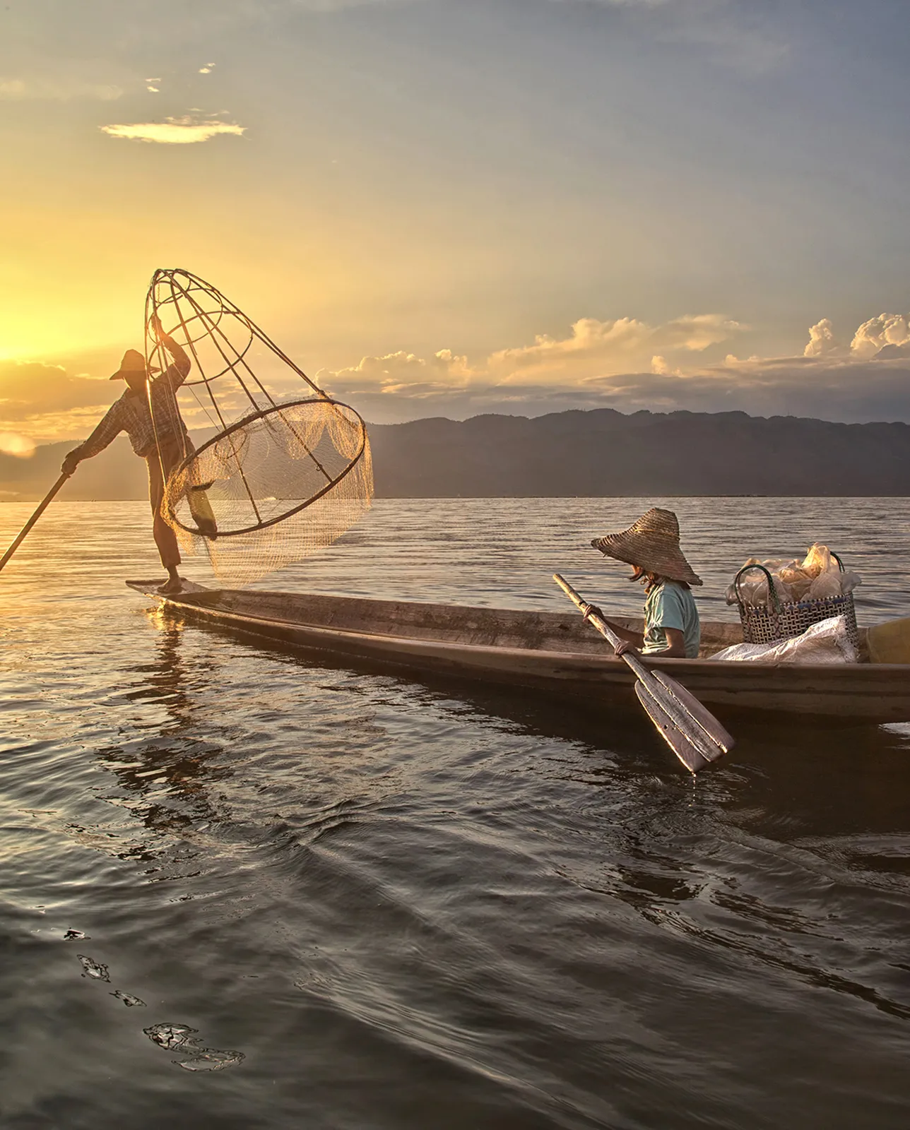 “Fishing”. A father and daughter with a fish in the net at sunset on Inle Lake, Myanmar. (Photo and caption by Cynthia MacDonald/National Geographic Traveler Photo Contest)