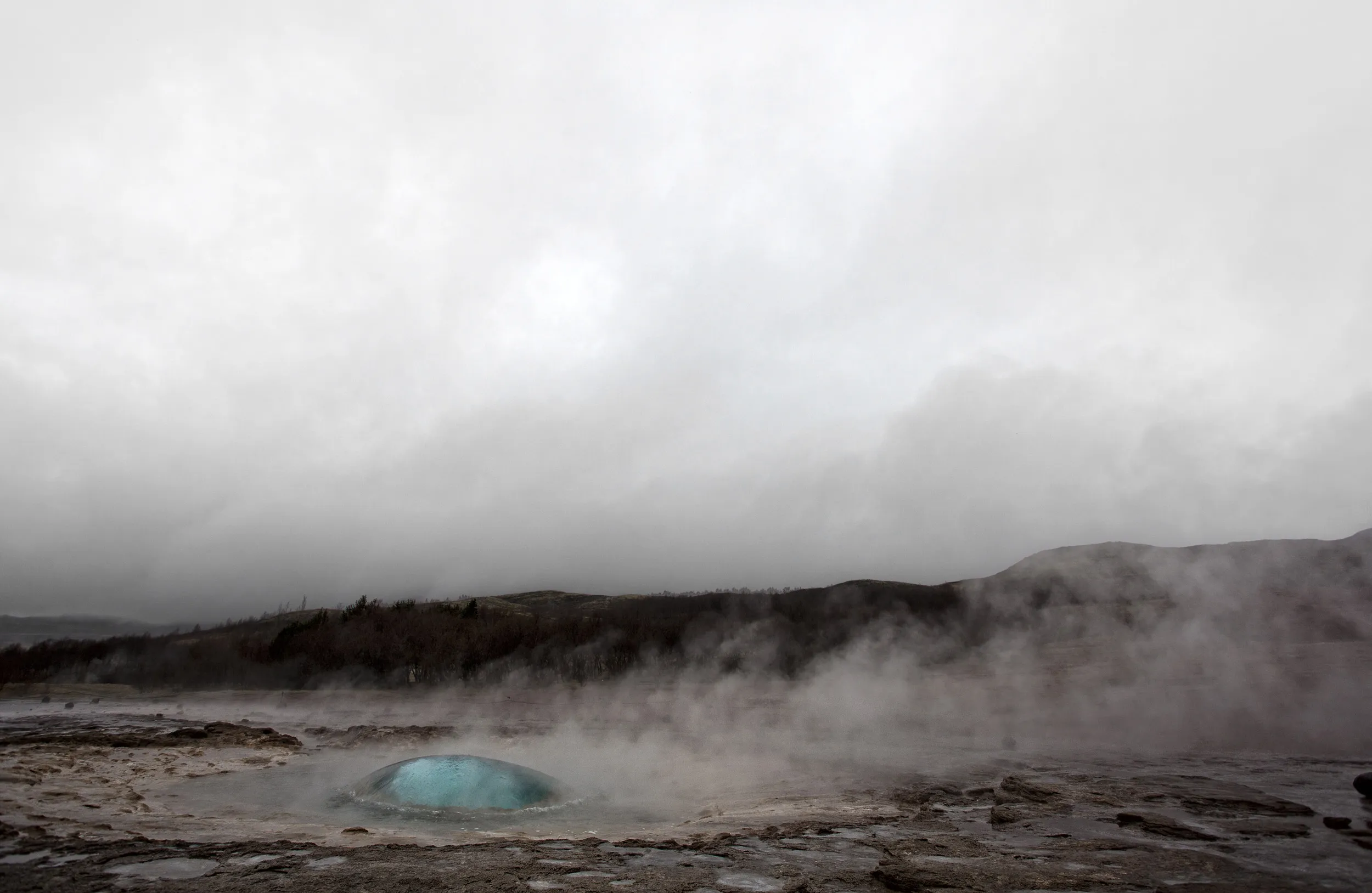 “Erupting Geyser, Iceland”. This is Strokkur, the (now) main erupting geyser on the geyser fields in Iceland, and this is just milliseconds before the boiling water explodes into the air under the subsurface temperature and pressure. It erupts roughly every 5 minutes and can reach as high as 40 meters. The subsurface temperature of the water is around 120 degrees celcius, but at those pressures it doesn't boil until it rises towards to surface which is what creates the eruption. Location: Strokkur, East of Reykjavik, Iceland. (Photo and caption by Jemma Lambert/National Geographic Traveler Photo Contest)