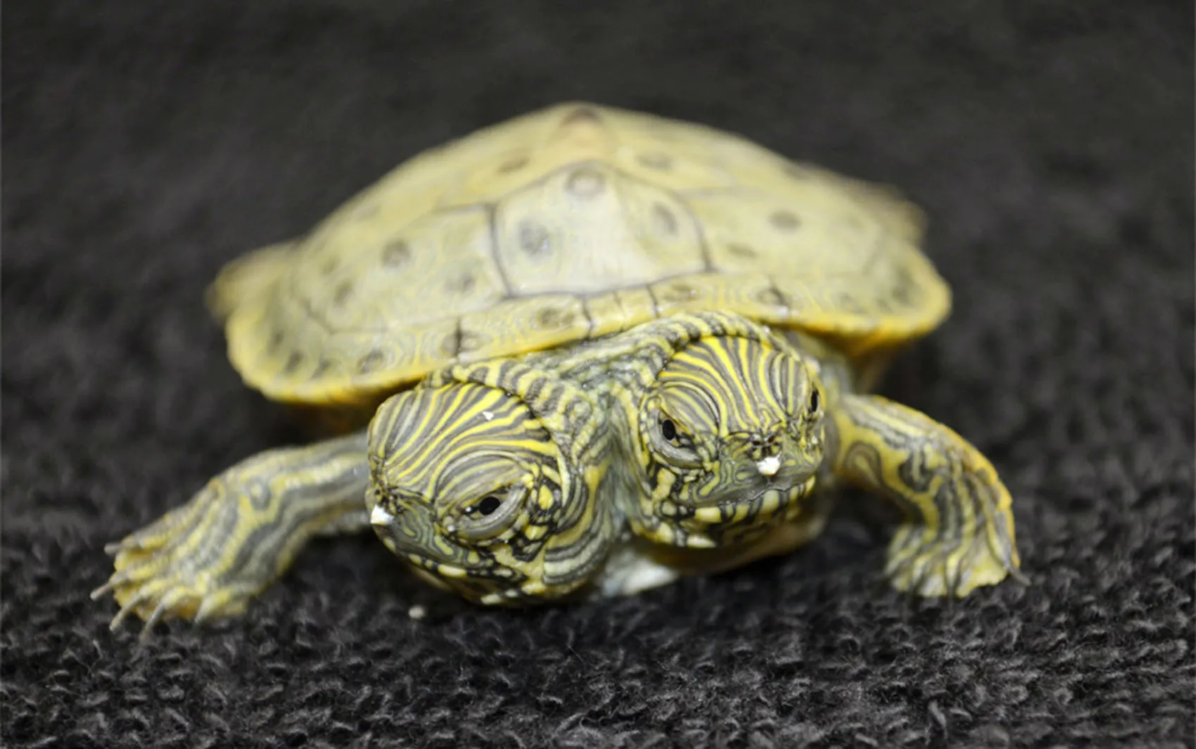 Thelma and Louise, a two-headed Texas cooter turtle, is seen in an undated photo provided by the San Antonio Zoo. Zoo officials on Tuesday, June 25, 2013 said the Texas cooter was born June 18. The turtle was one of several Texas cooters born this month at the zoo but the only one with two heads. The unusual turtle will go on display Thursday at the zoo's Friedrich Aquarium. (Photo by AP Photo/San Antonio Zoo)