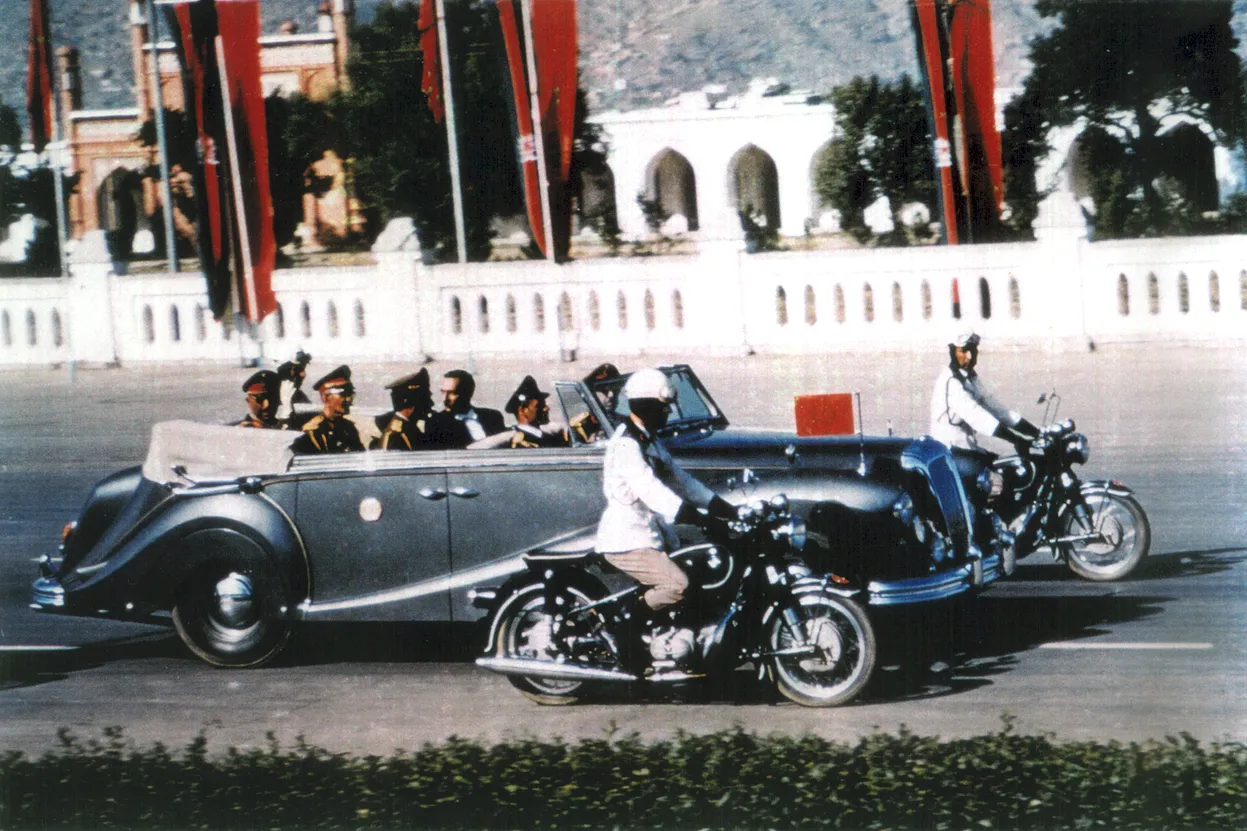 The King of Afghanistan, Mohammad Zahir Shah rides in his limousine on Kabul's central road Idga Wat in this 1968 photo. Zahir Shah, the last of King of Afghanistan lived in exile in Rome since a 1973 coup, returning to Afghanistan in 2002, after the removal of the Taliban. He passed away in Kabul in 2007, at the age of 92. (Photo by AP Photo/Handout, The Family of the King of Afghansitan via The Atlantic)