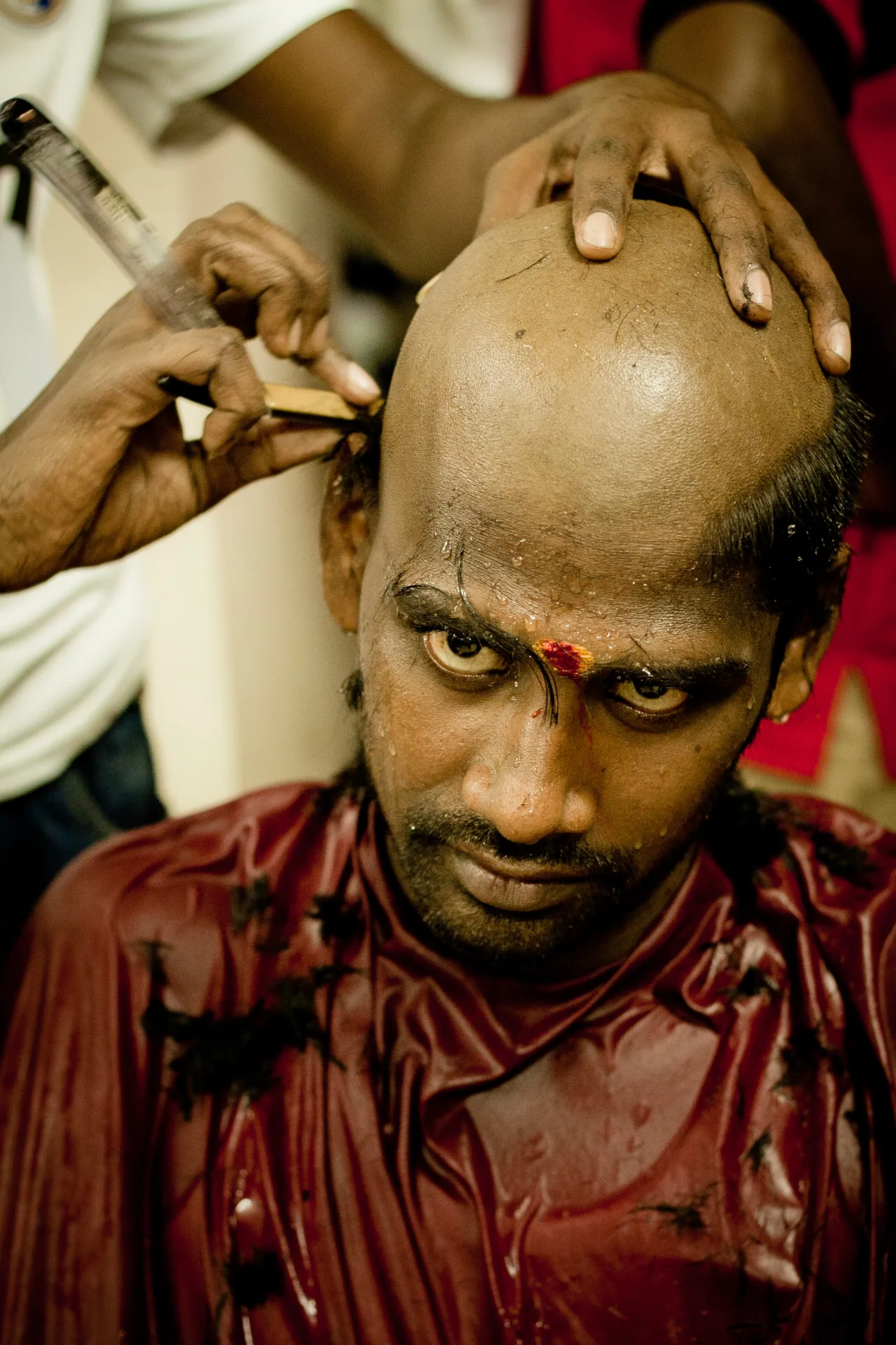“The great determination”. The Thaipusam devotees would shave their heads (chaulam) during the Thaipusam before their spiritual journey to fulfil vows and as a symbol of humility and penance. I choose to portrait this honest moment during hair shaving to etch out his inner heart and high level of spiritual commitment towards his fulfillment of his vows to the Lord from his eyes. His eyes demonstrated the spiritual energy, courage and willpower, the confidence to undertake any work or fulfil any dream. Location: Batu Caves, Malaysia. (Photo and caption by Yew Kiat Soh/National Geographic Traveler Photo Contest)