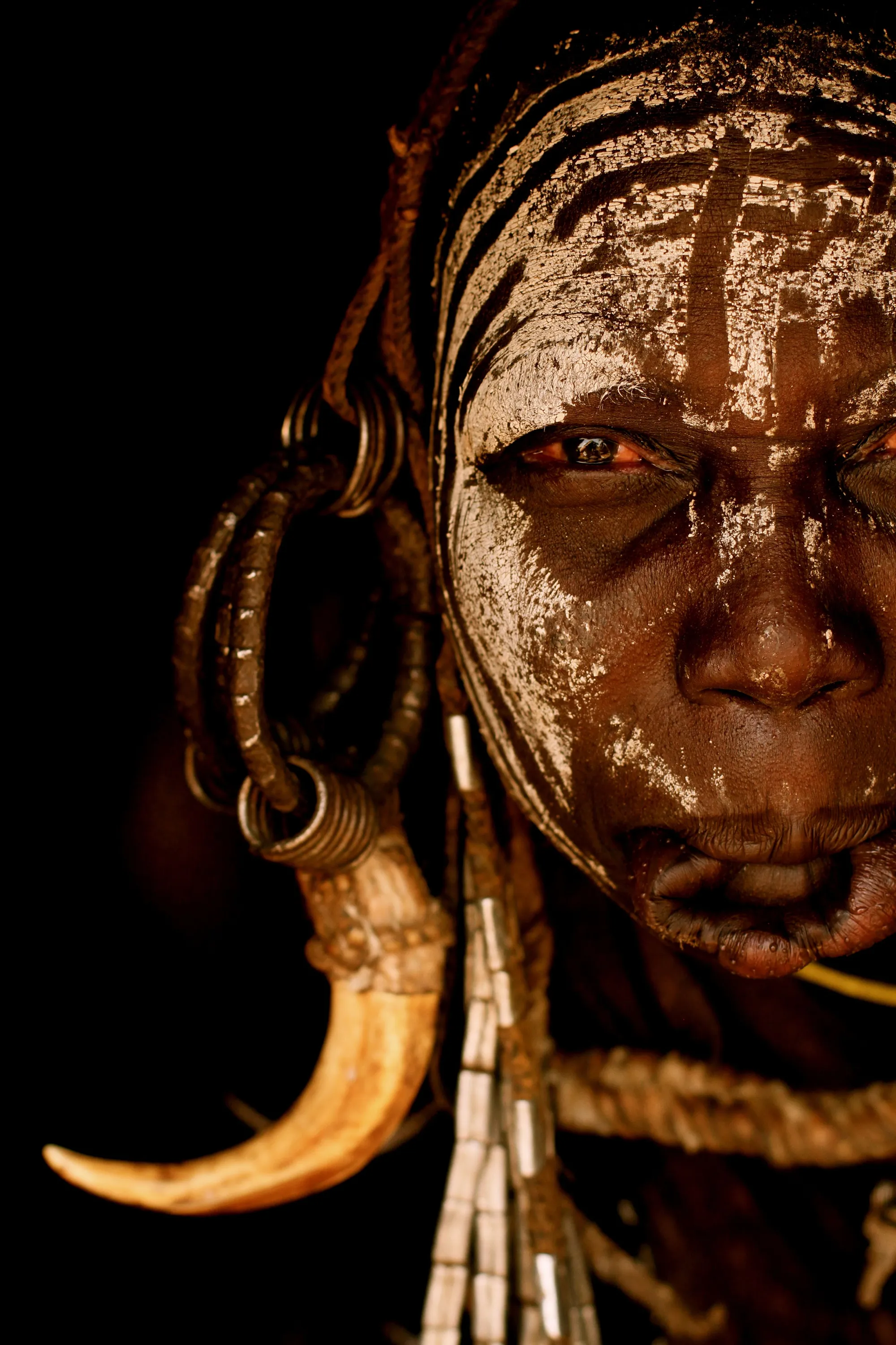 “Tribal Africa: Mursi Woman”. This shot was taken during a trek through southern Ethiopia. The elderly woman from the Mursi Tribe pulled me down towards her banda, where I used the dark background to snap her in full regalia. The Mursi use paint and elaborate headdresses as part of the daily appearance. The woman lip is also stretched which is indicative of the Mursi and Surma people of the Lower Omo. The lip is usually stretched around a ceramic plate, which is first inserted when the girl reaches the age of 16. (Photo and caption by Ben Hogarth/National Geographic Traveler Photo Contest)