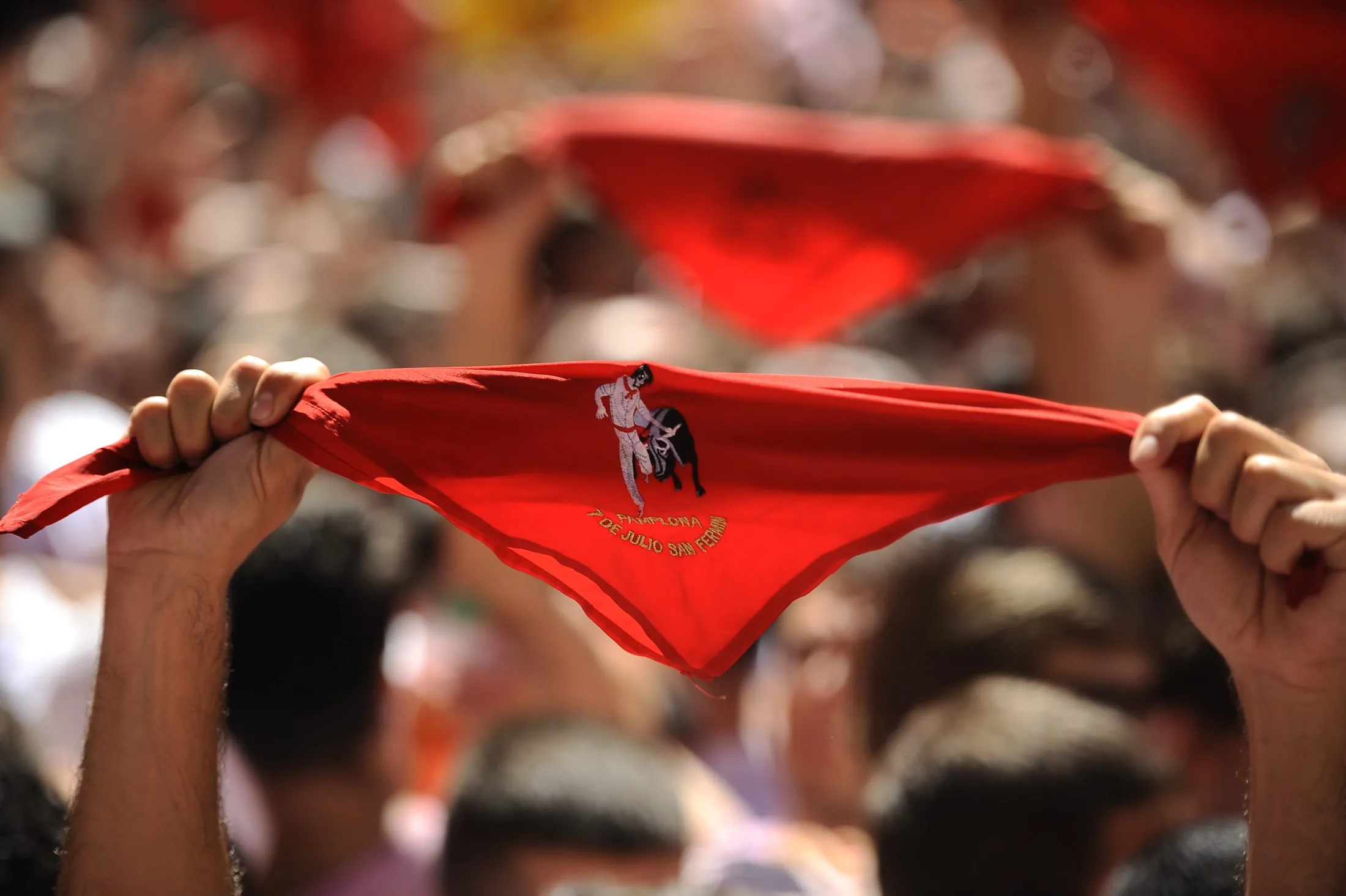 Revelers hold up traditional red neckties as tens of thousands of people packed Pamplona's main square in Pamplona, northern Spain on Saturday, July 6, 2013 to celebrate the start of Spain's most famous bull-running festival with the annual launch of the “chupinazo” rocket. Perhaps best glorified by Ernest Hemingway's 1926 novel “The Sun Also Rises”, the San Fermin festival is known around the world for the daily running of the bulls. (Photo by Alvaro Barrientos/AP Photo)