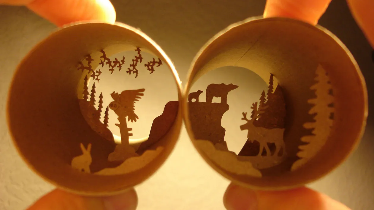 Toilet paper roll art of wildlife in the wilderness. (Photo by Anastassia Elias/Caters News)