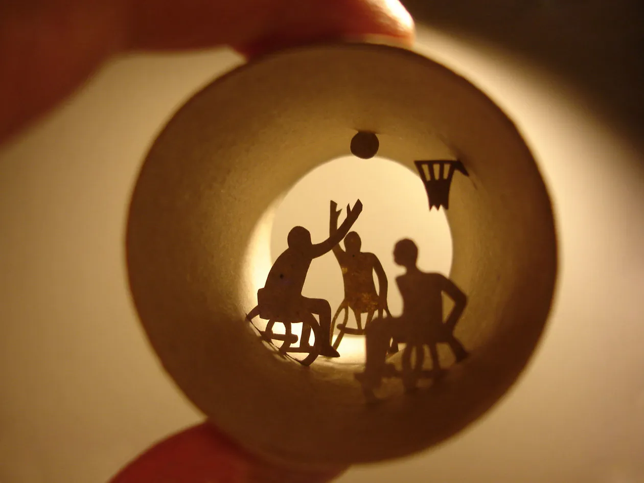 Toilet paper roll art of wheelchair basketball. (Photo by Anastassia Elias/Caters News)