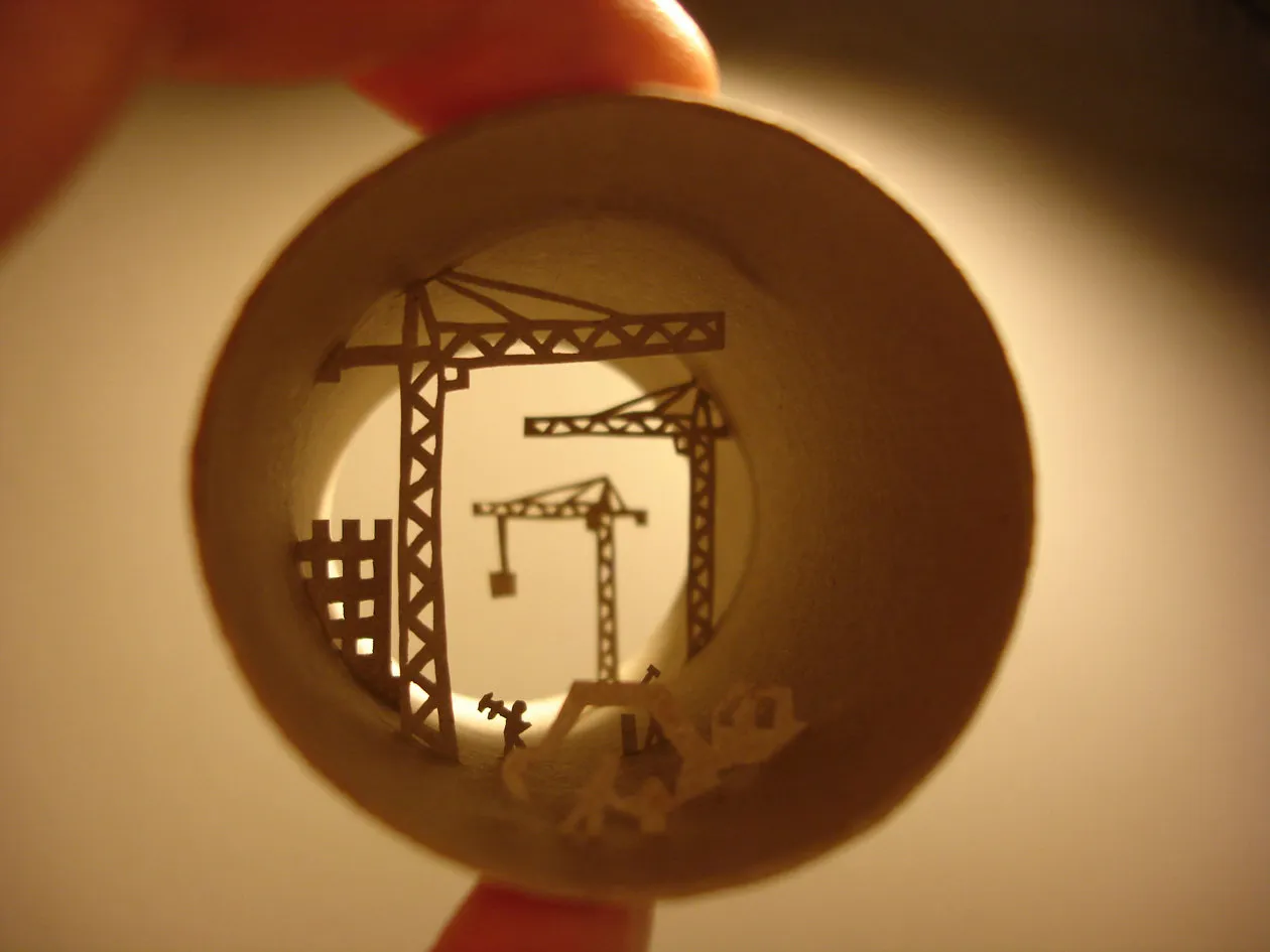 Toilet paper roll art of a construction site. (Photo by Anastassia Elias/Caters News)